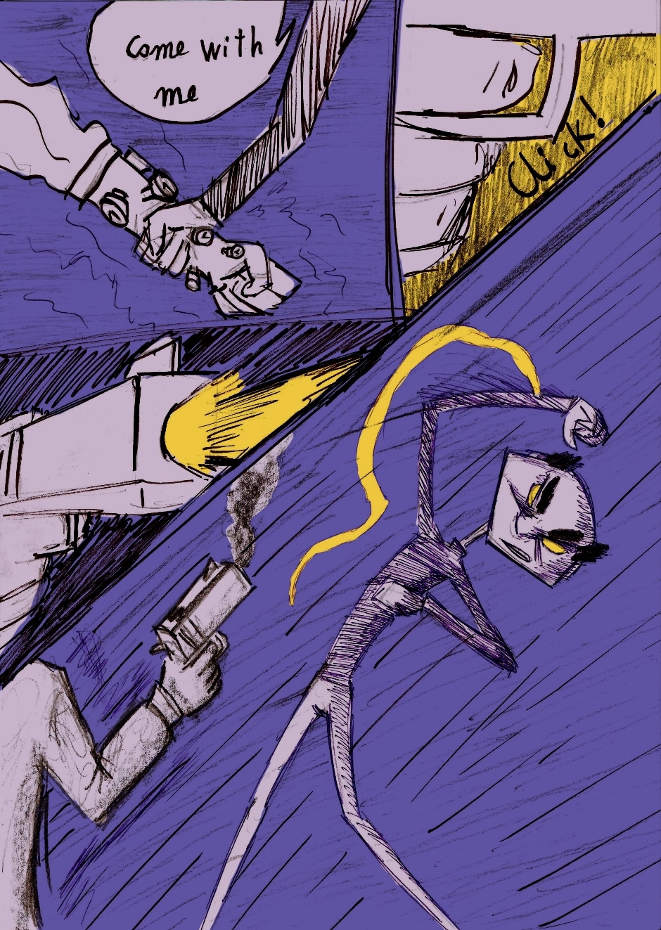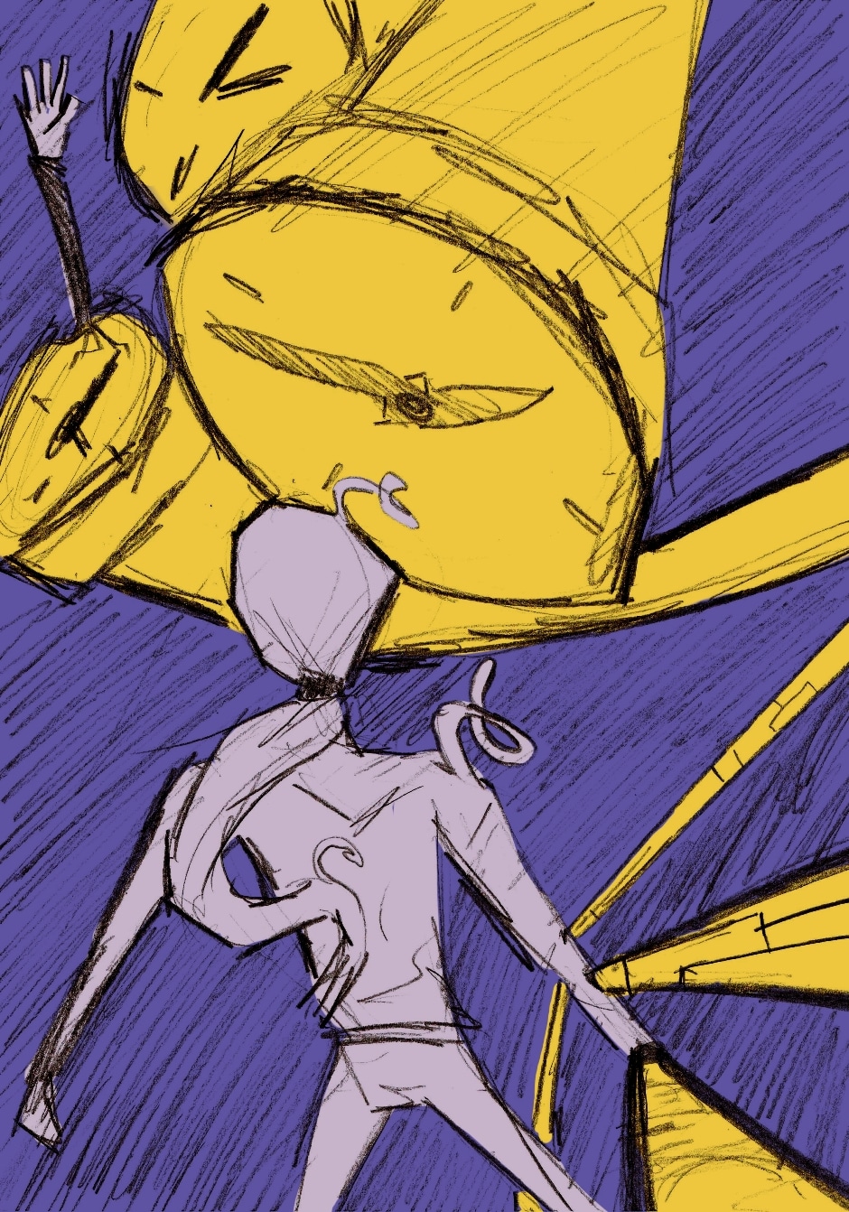 I can see you use a mixexd meida approach too with the mix of crayons and marker. Also the Cubistic style is unique and I think you could do alot with it