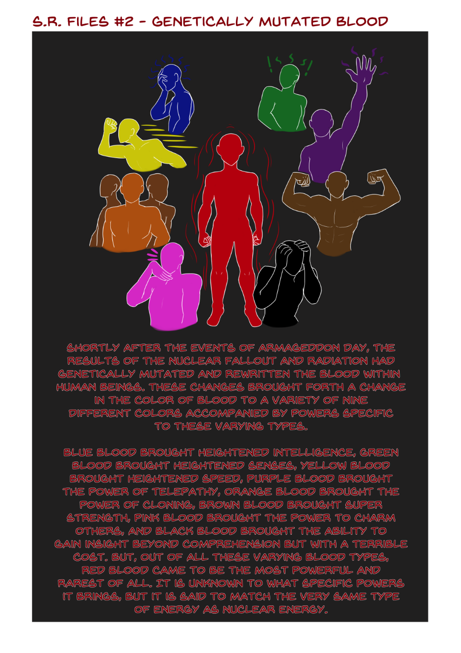 Here is the second file which regards one of the outcomes from Armageddon Day: genetic mutation that altered human DNA and unlocked hidden genetic codes to certain abilities. Enjoy!