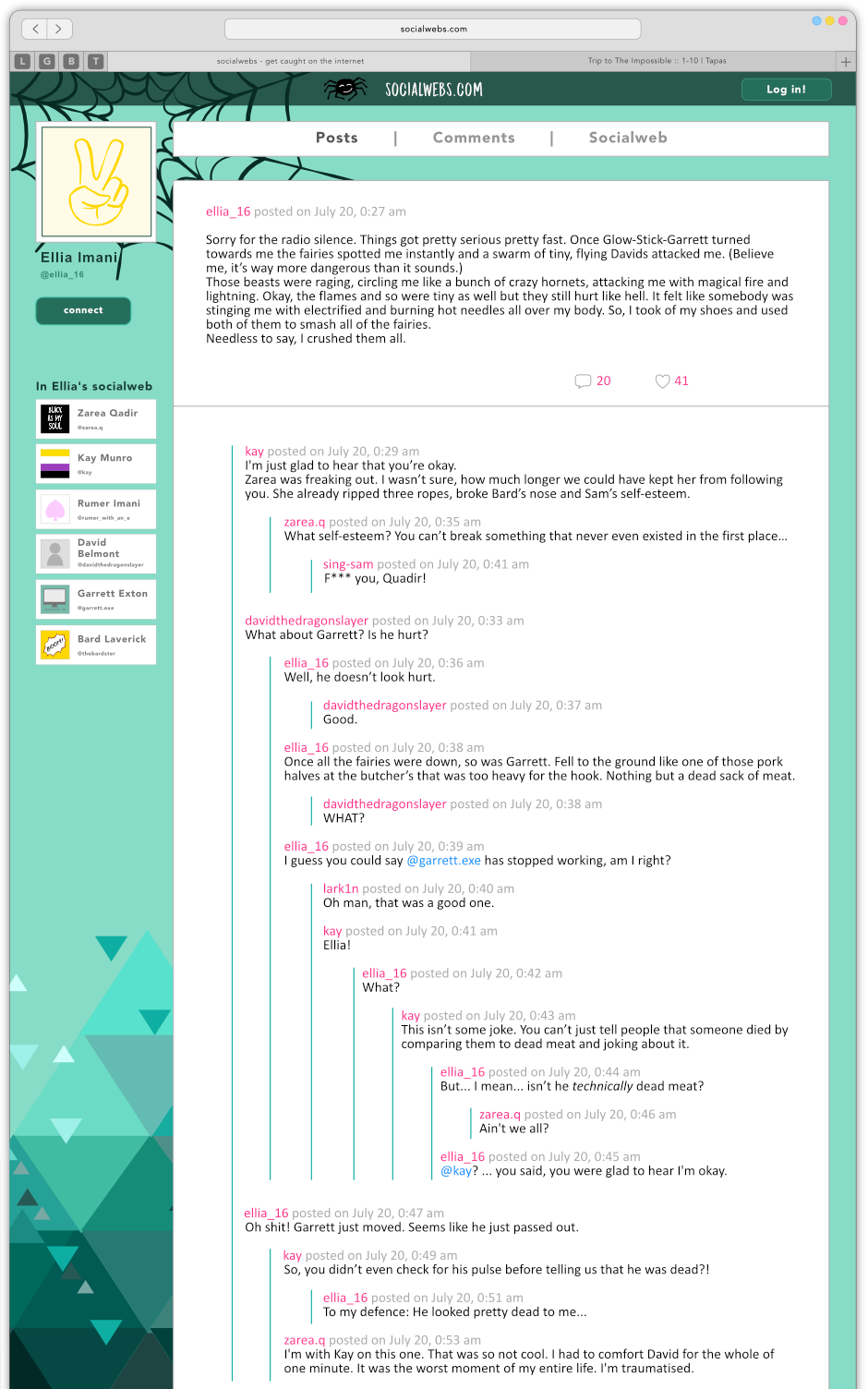 A funny ´web-not-comic´ all around the freaky and the weird. Crazy and loveable LGBT+ characters. A non-binary love interest.