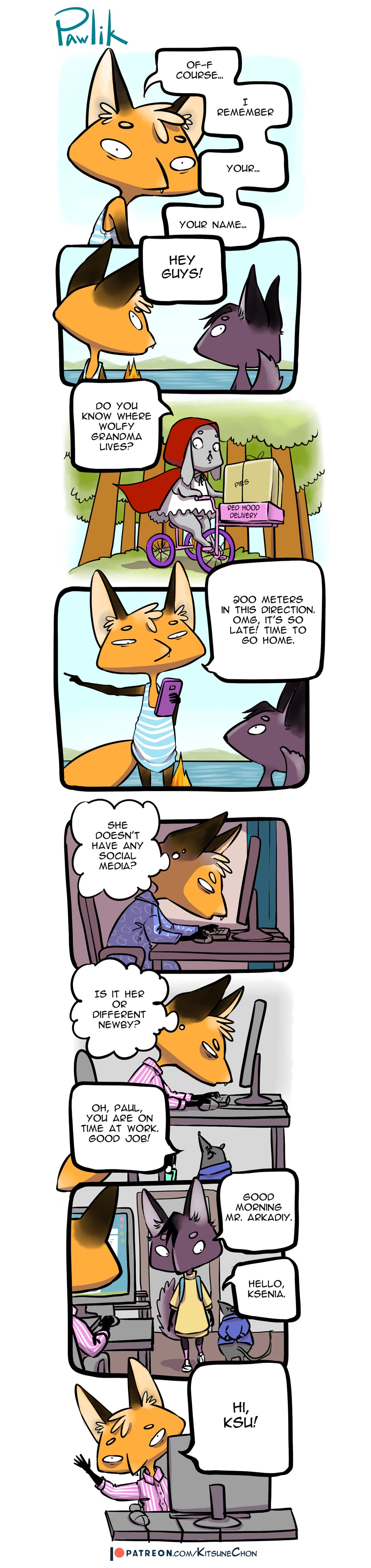 Pawlik the fox has almost become adult. Now he has to figure out all the stuff by himself: how many snags he has to pay for apartment, should he take off his tongue in the public transportation when it's hot, how not to spend all leaves on socks. In an adult world you have to be very serious, but Pawlik's head is full of pink ducks and racoons-austronauts - they are his friends and he doesn't wanna leave them.