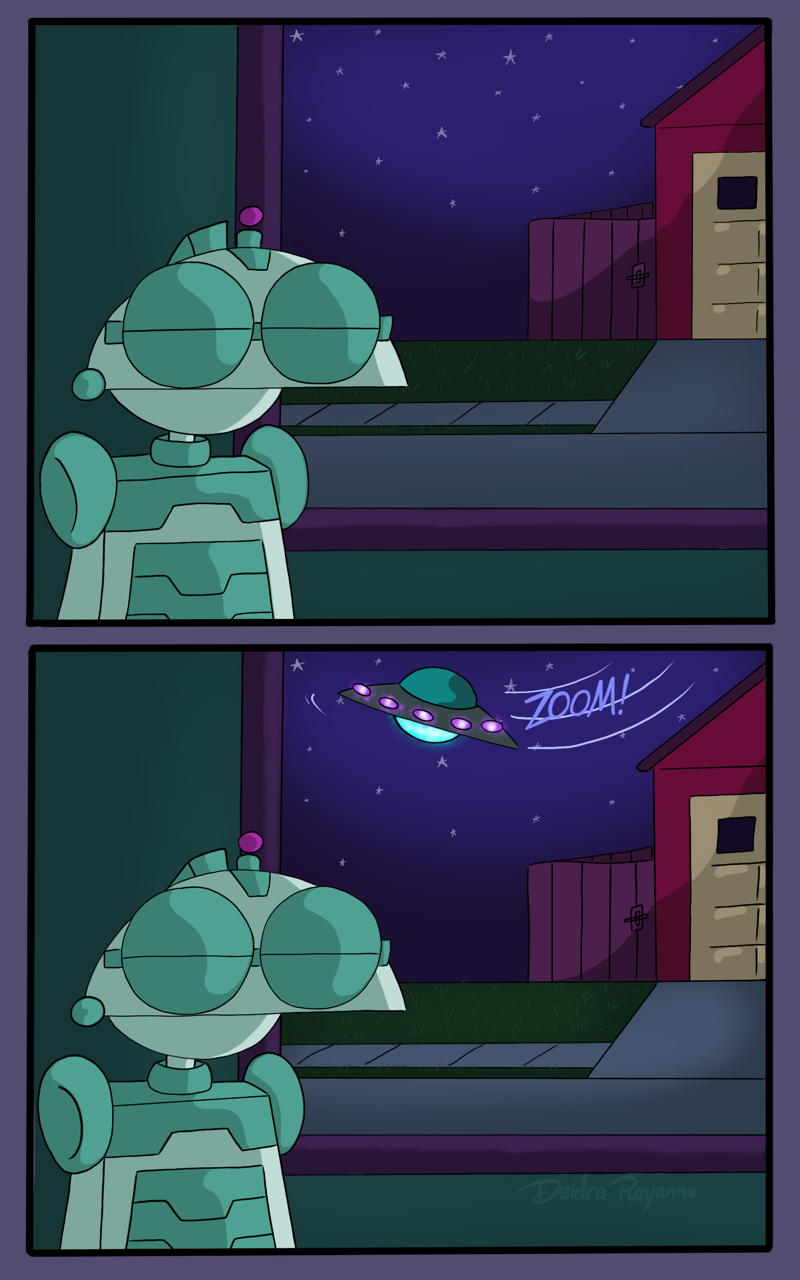 It was one hour till midnight, And all through the house, Not a creature was stirring, Except the glowing alien starship flying outside.