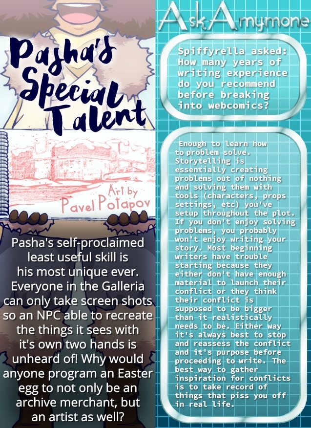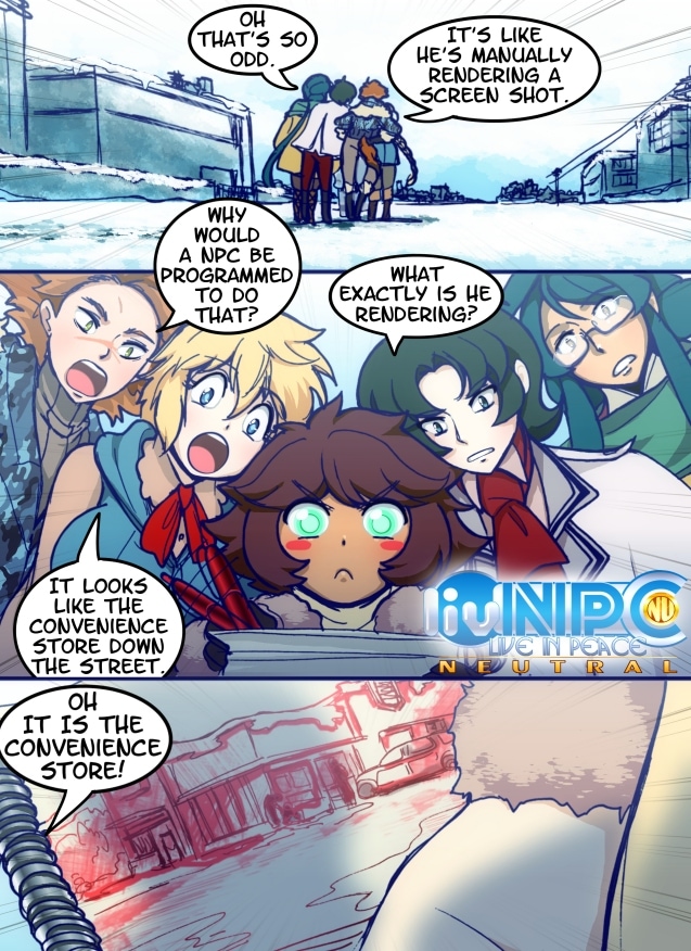 Non-player characters (NPCs) are any game characters not controlled by a player, but here among the fifty MMORPGS hosted by the Galleria, these artificial individuals struggle against users to make a digital living for themselves. Pasha Potapov is a side quest NPC who finds himself unemployed and homeless when his bonus level is discontinued. His luck turns around when he receives help from two Samaritan boss NPCs...