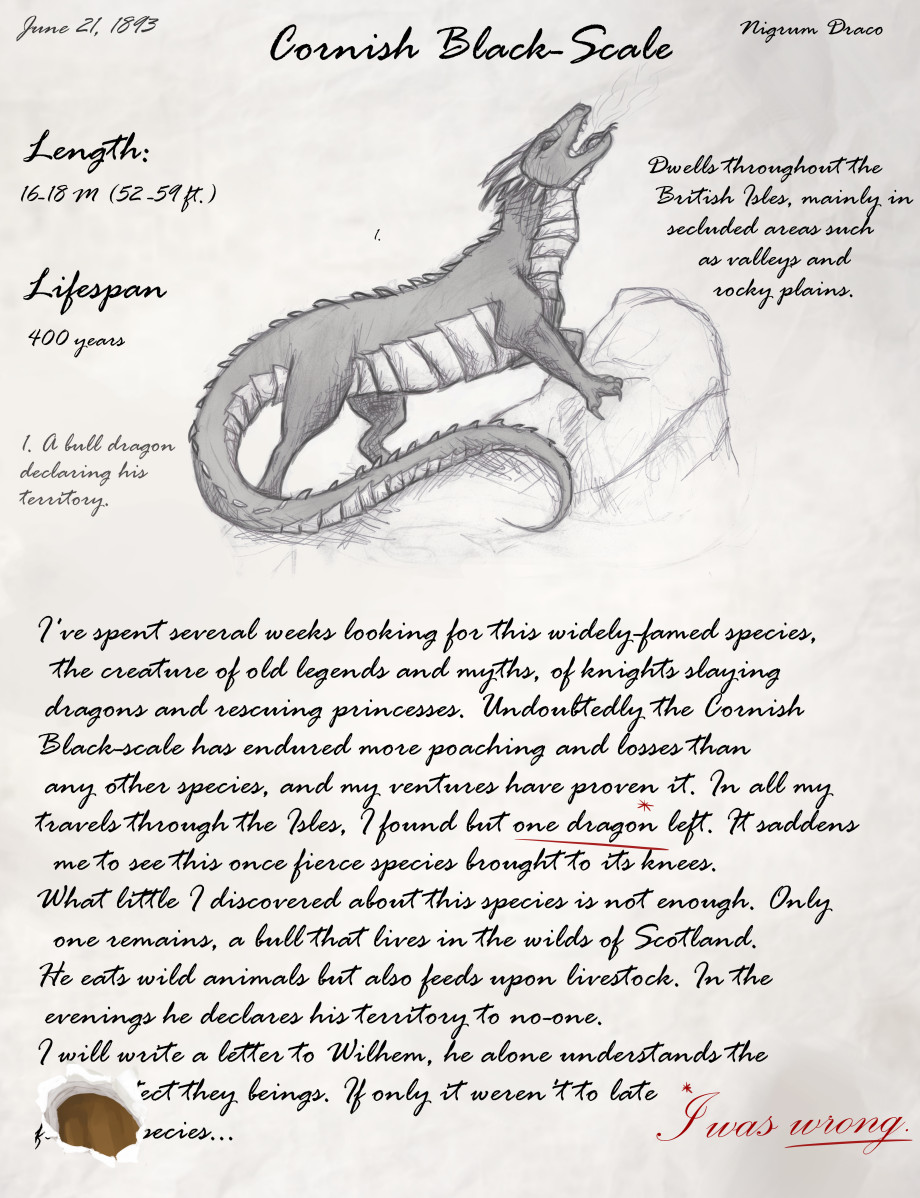 Brant Sandmoor's only edition of the "Dragon Field Guide". This book has traveled through every continent, through rain and drought, and through murder, to get to you. This book has survived many attempts to burn it, please take care of it as you discover the truth behind Brant Sandmoor's Dragon expedition. Enjoy!