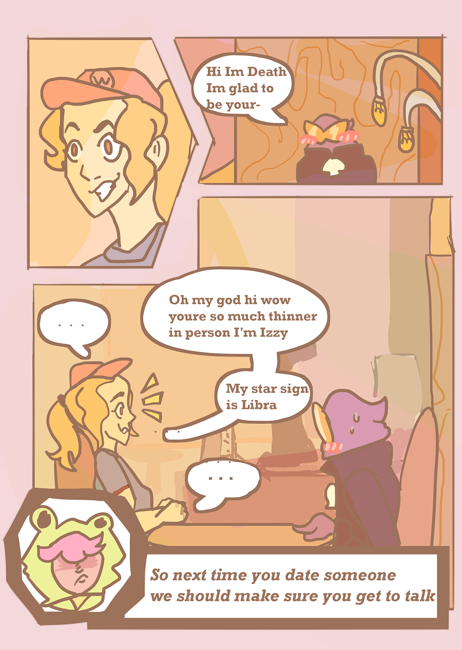Dating has never been easy, and Death himself has also had some problems. From freaking out the date, to sacrificing them, or just in general... ruining their life. Join Life as he searches the internet for the perfect mortal companion for his best buddy Death.