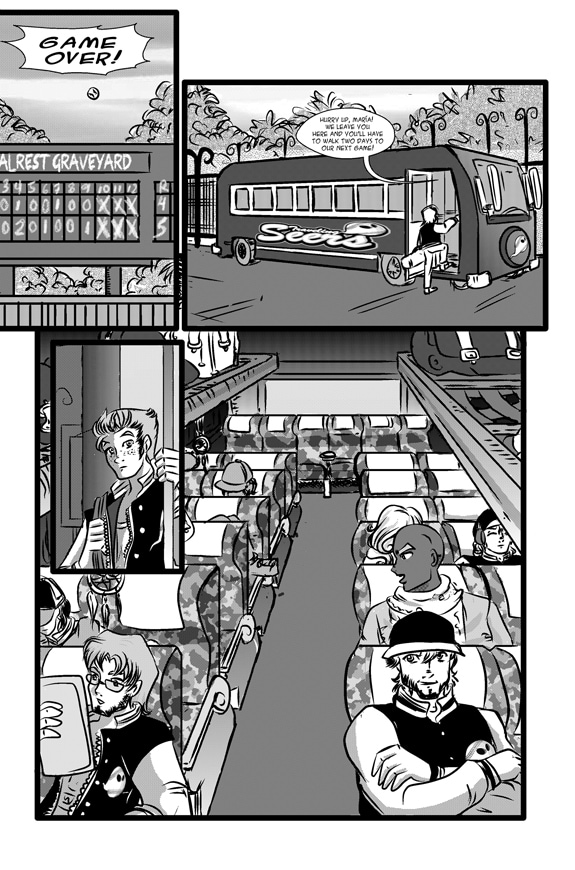 Now a days, MLB teams get planes. But for smaller teams with less budget, buses are the way to travel. Given that the Traveling Seers play in a league where they're the only ones who need to eat, you can imagine their budget is not that good.