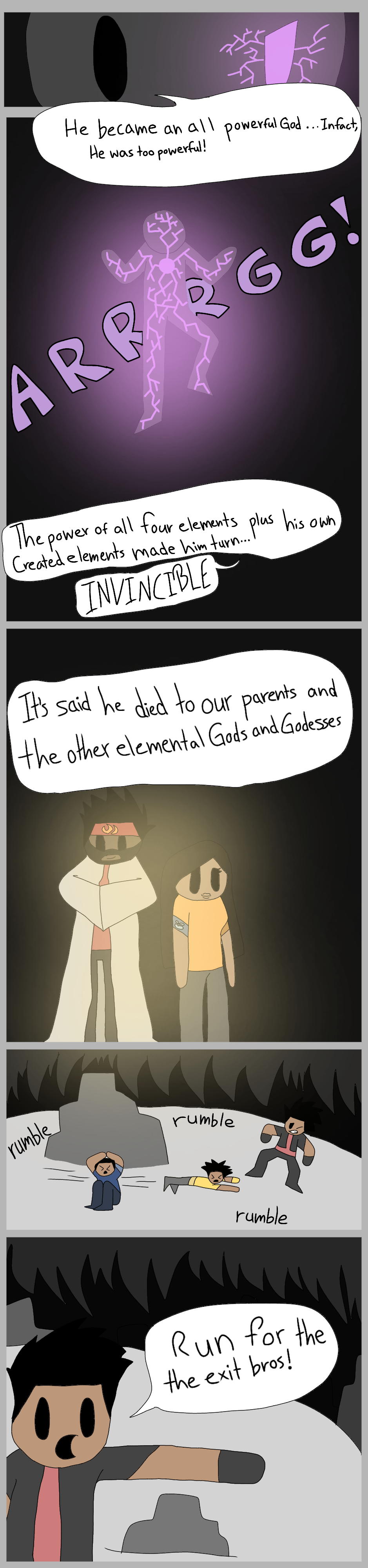 A foe of their parents has been noted throughout the cave. The brother's find each passage, but then, a rumble enters the cavern and now, they must escape or be crushed.