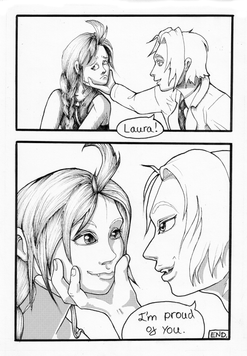 The last 3 pages. Whoo! I know there is lots to improve on but its my first comic so it could have been so much worse lol. I have another comic set in the same universe in the works. I'm HOPING that I'll be ready to start posting that in October. Stay tuned. :-) As always comments are VERY much appreciated. <3