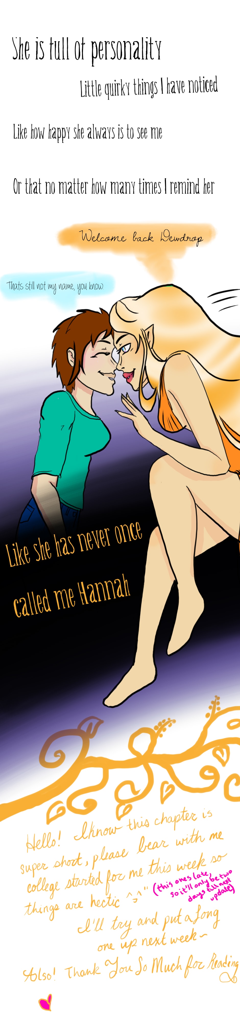 Looks good so far! What'd she call Hannah, Dewdrop? Not sure if I read the cursive right.