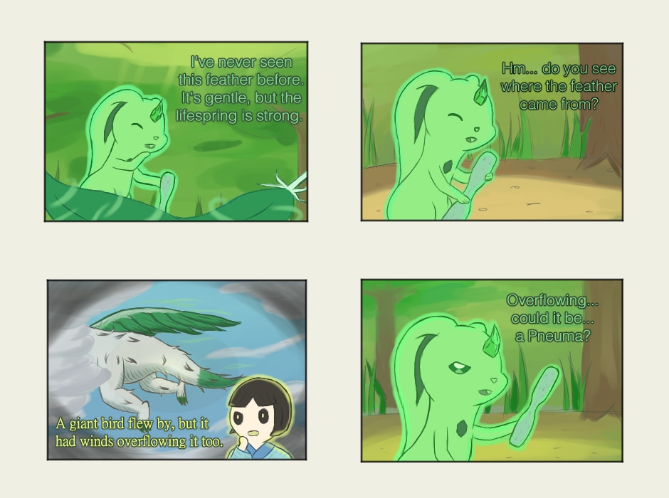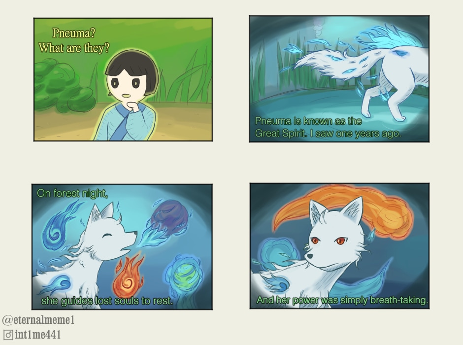 Pneuma is a high class Spirit. There are various Pneuma with supernatural powers and intelligence-- initially designed to help living beings. However, they have free wills; allowing them to make good or bad choices. They are seen by normal people, but are normally rare.