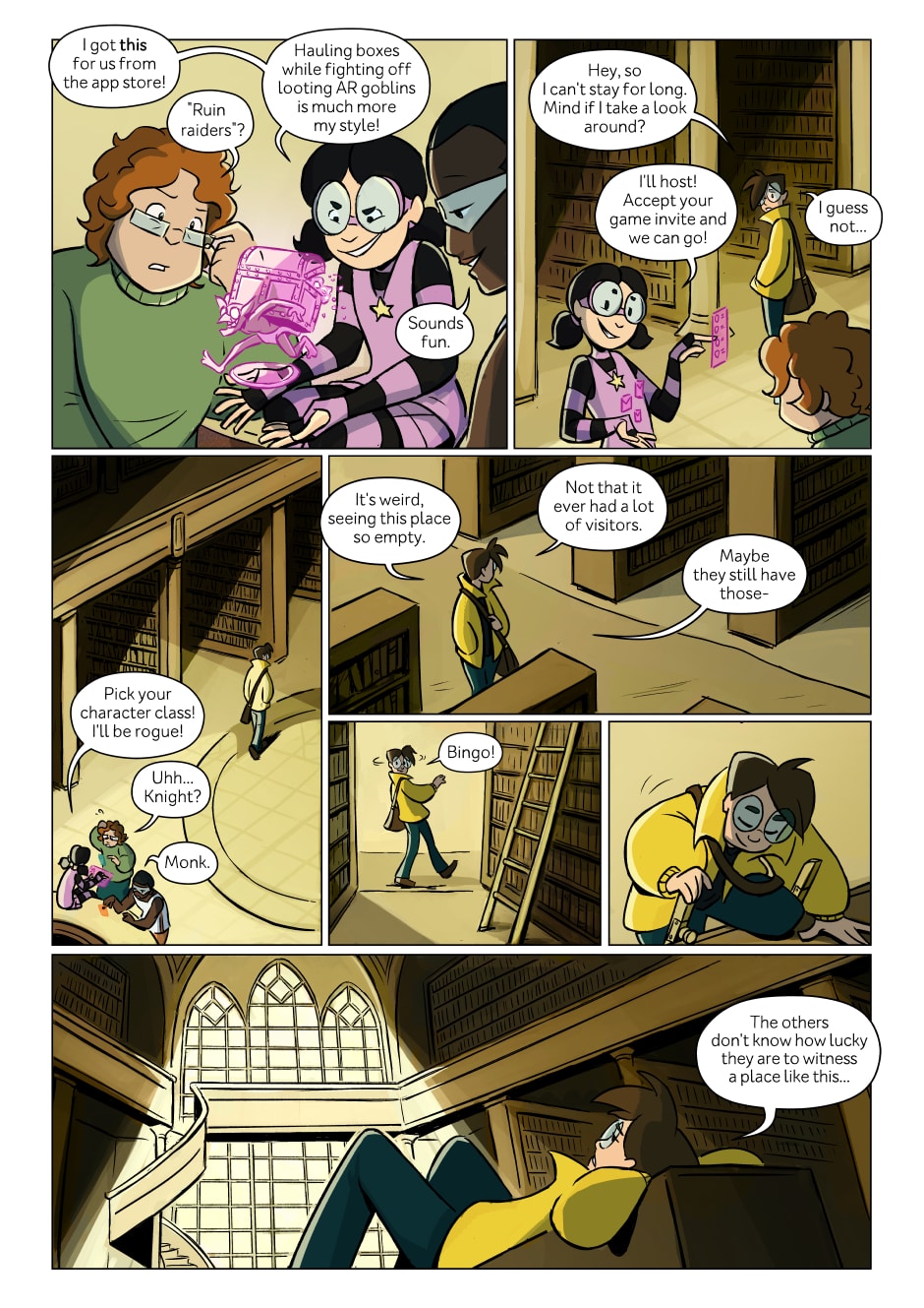 The gang boots up a game while Esa goes to get some alone time. We used to play quite a lot of D&D and other role play games when I was younger. Have no time to do that as much anymore, but I still love to poke fun at all the tropes though.