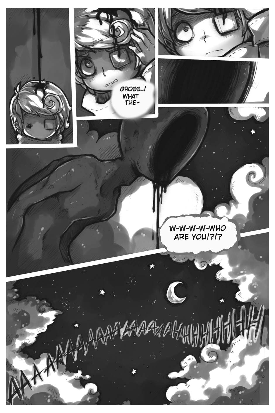 The story begins where Aria and Nicholas, very confused, meet Merfie, a monster that welcomes them to his home.
