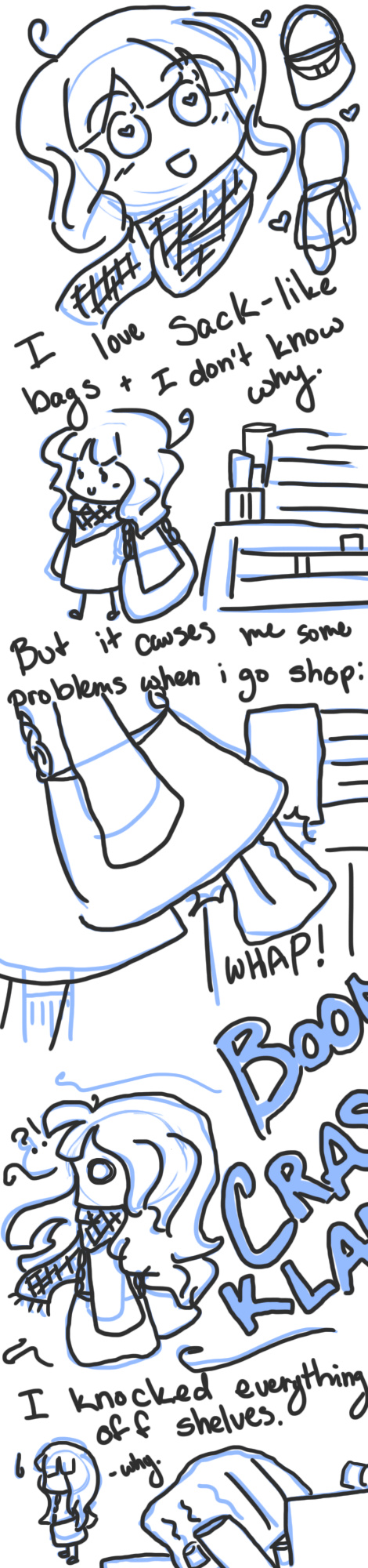 I think what makes it worse is being out shopping in the most empty store ever and knocking everything over when I turn the corner. I get so much stink eye from old people. GDI why me