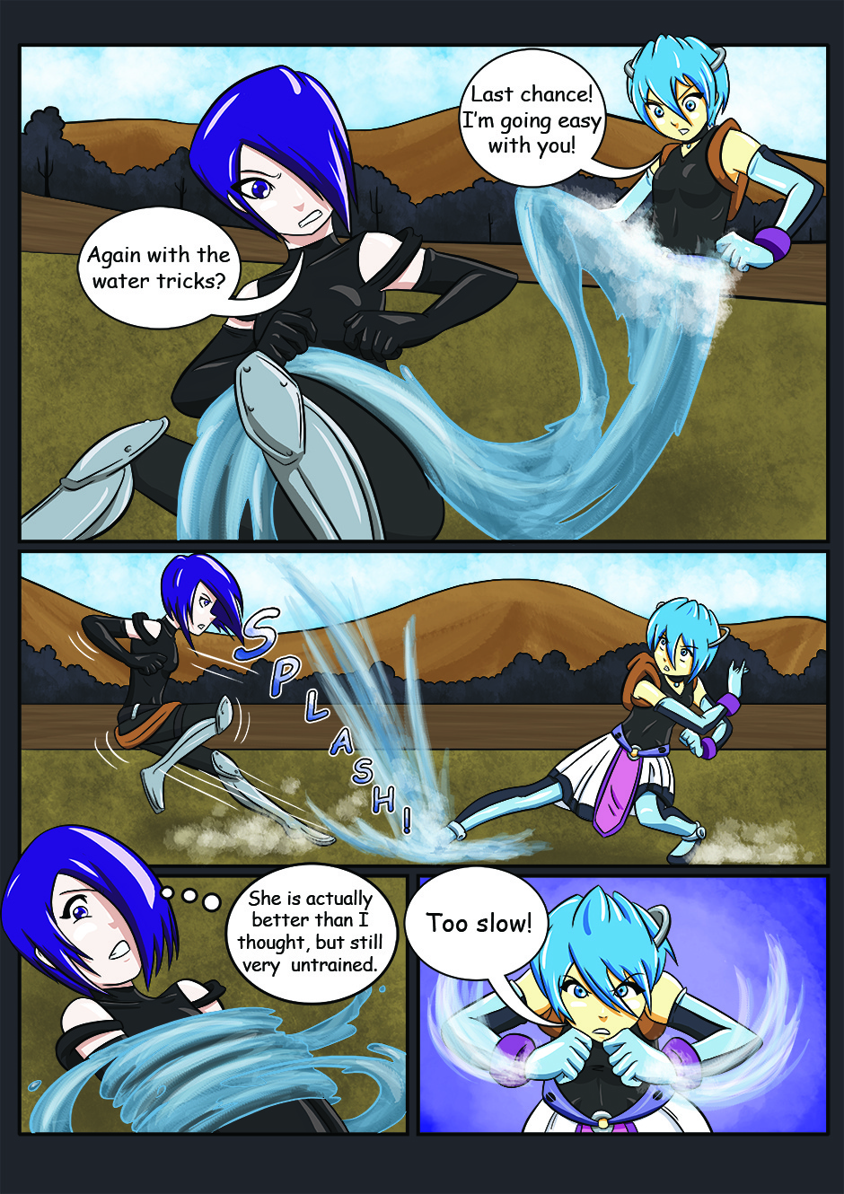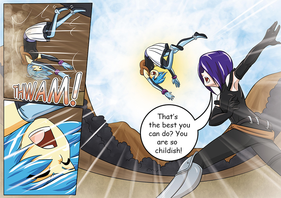 The battle between the two girls Anahita and Agrona continue. Agrona has Anahita trapped down, - will her water element abilities be enough to turn the battle?