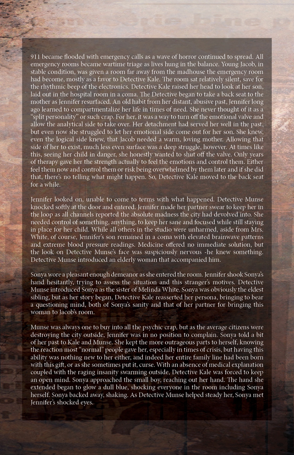 Now over a decade later, Jennifer Kale and her child are thrust into an even more nightmarish world as The Artist returns triumphantly from beyond to complete his work and herald the return of his masters. In a world unprepared for the things that lurk beyond, can a hardened Detective unravel the secret of The Artist, or will the world be consumed in a tide of madness as the very walls of reality crumble around us?