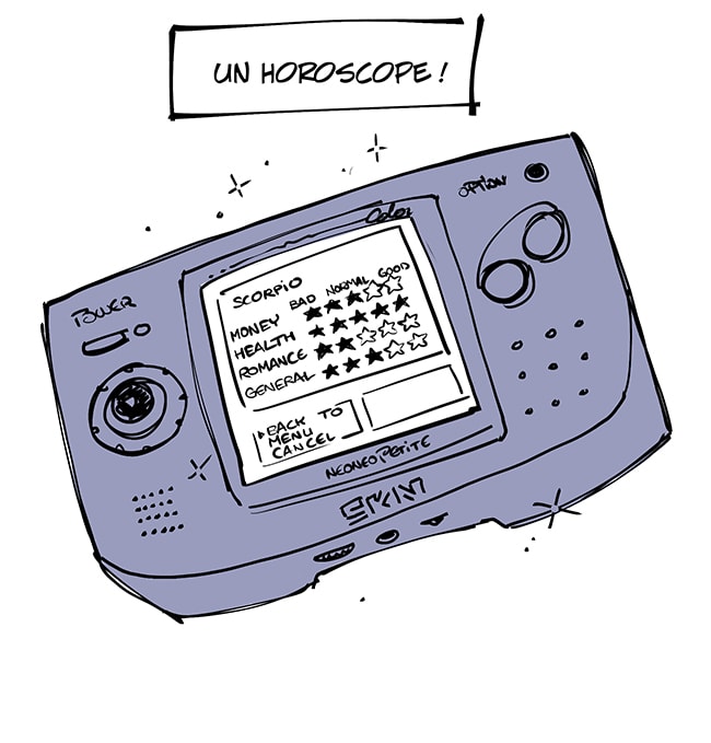 Neo Petite est la seule console de l'histoire à pouvoir lire l'avenir grâce à son horoscope intégré. Une capacité qui fait des envieux...