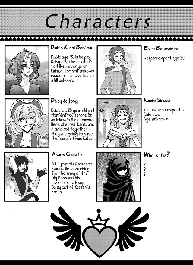 Daisy de Jong is an spoiled rich girl who went on a cruise with her mother and ended up on a strange island where demons rule the land. To save her mother from the evil demon lord who attacked the cruise ship she has to join forces with the sarcastic outcast, demon pretty boy Diablo.