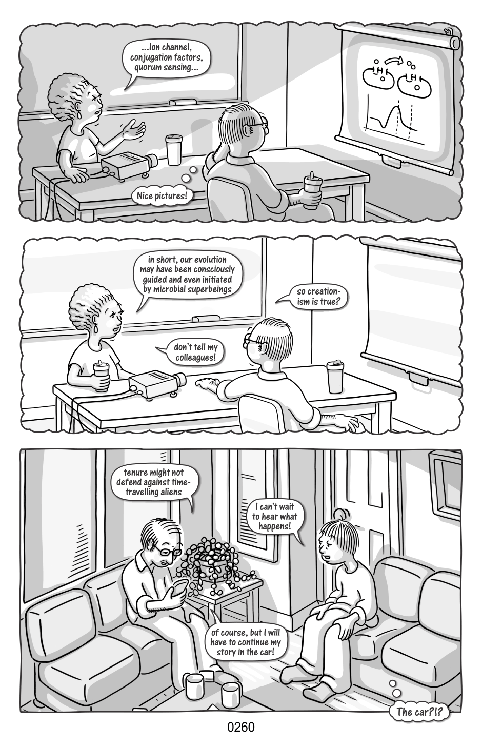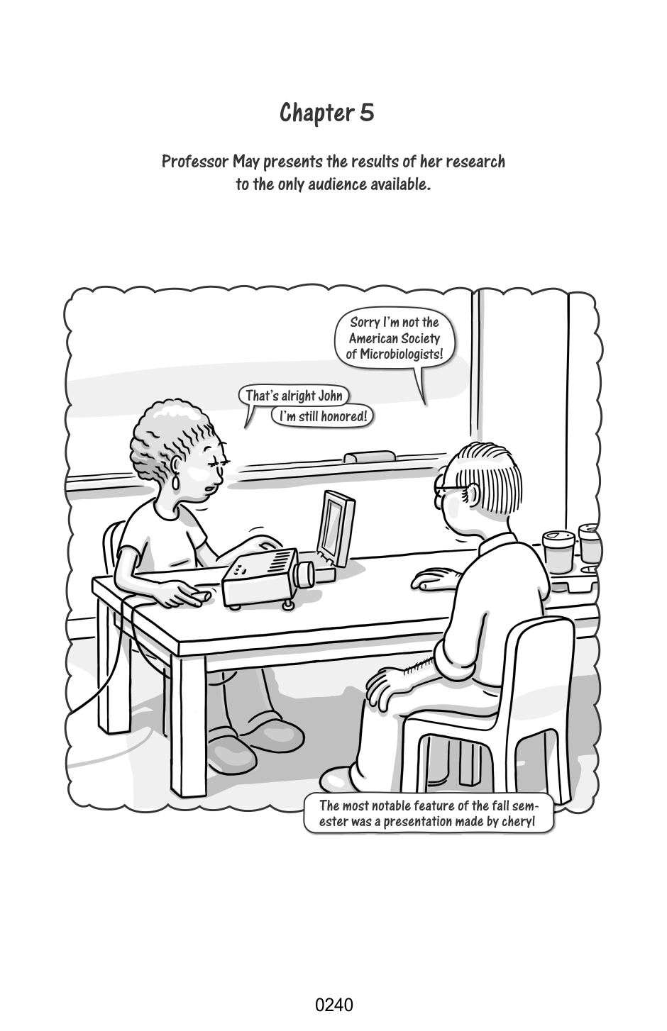 Professor May presents the results of her research to the only audience available.