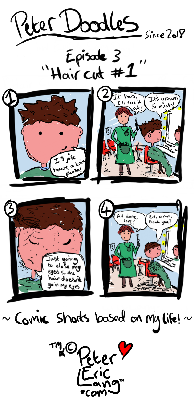 Follow Peter through a series of comic Doodles based on his life! From his hilarious comical adventures with his girlfriend Georgia to the funny things that go on in life with his family, cats, rabbit and even his extended family like aunties, uncles and his Grandad! You'll be sure to relate to topics such as nuisance phone calls, the bizarre behaviour of pets, an inability to share food, haircut disasters and so much more! Come and follow this cute adventure! It's going to be fun!!