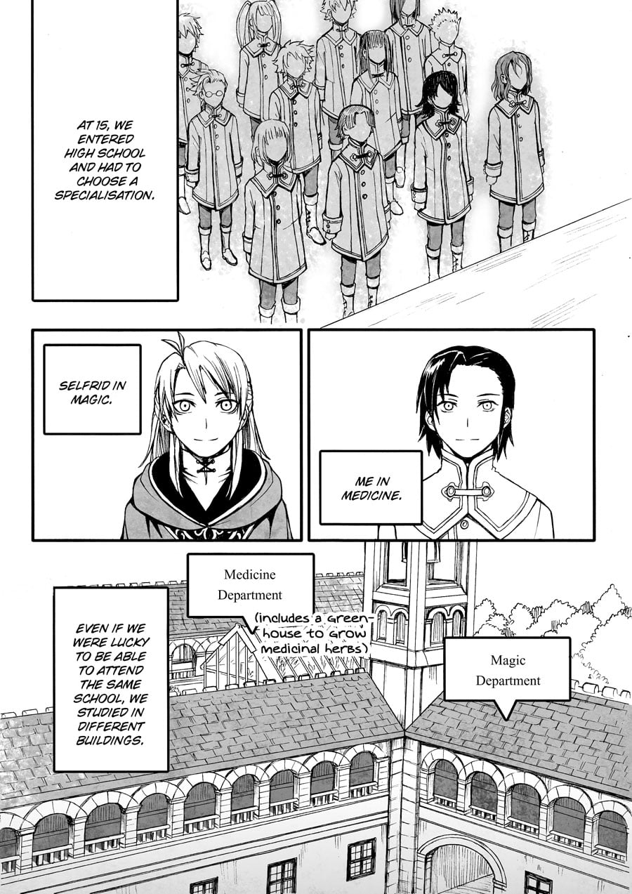 Alphor, a countryside apothecary, comes to the capital city for work, where he has a chance encounter with his estranged childhood friend, the wizard Selfrid. The same childhood friend who confessed his love for him ten years ago, before they separated.