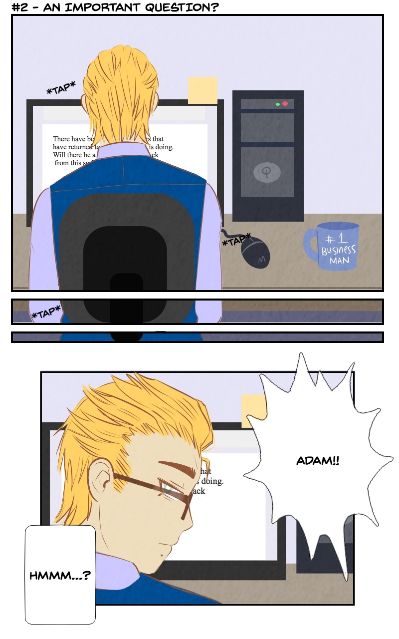 Gus has a VERY important question for Adam. What is it about? ___ Leave suggestions and questions for a chance of those being included in the comic!