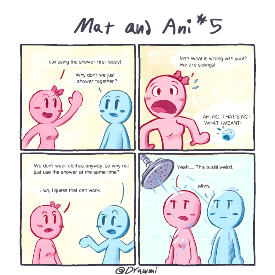 Mat and Ani come to the realization that whatever it is that they are, does not have any need for clothing. Also the art style changes again.