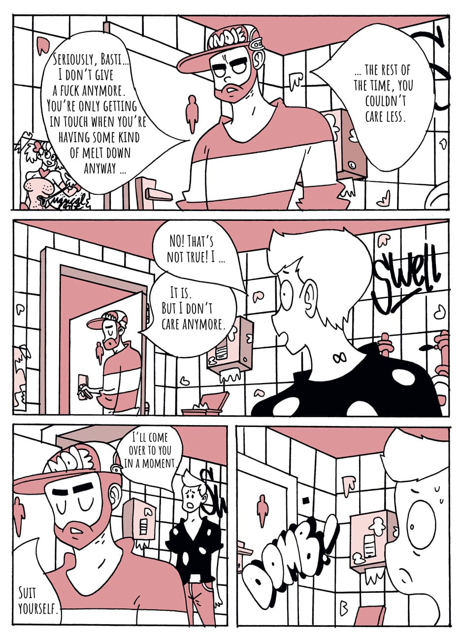 Basti is in a crisis, after his girlfriend dumped him. Now the hip twenty-something-boy from Berlin is looking for comfort in his sleepy home town. There he meets Pia again, who has always dreamed of the big, wide world and is now working in the local supermarket. What starts as a nice flirt ends in a small catastrophe.