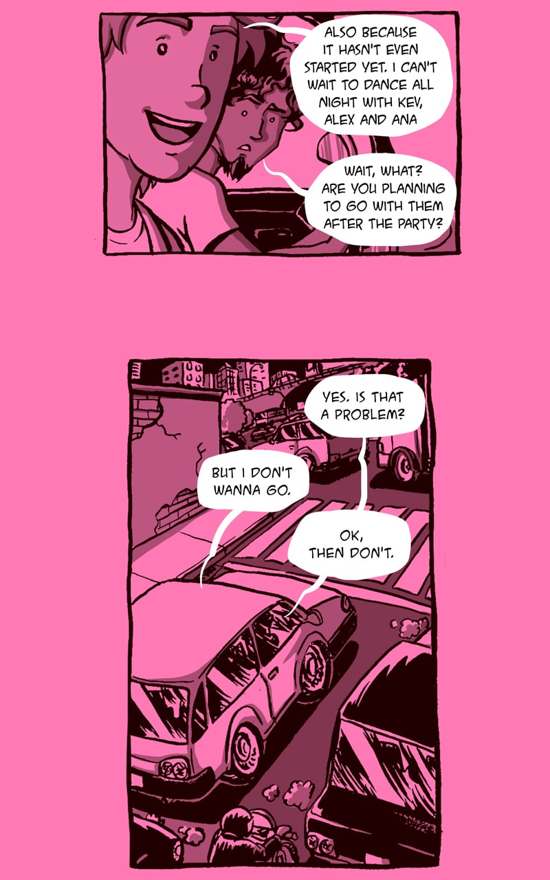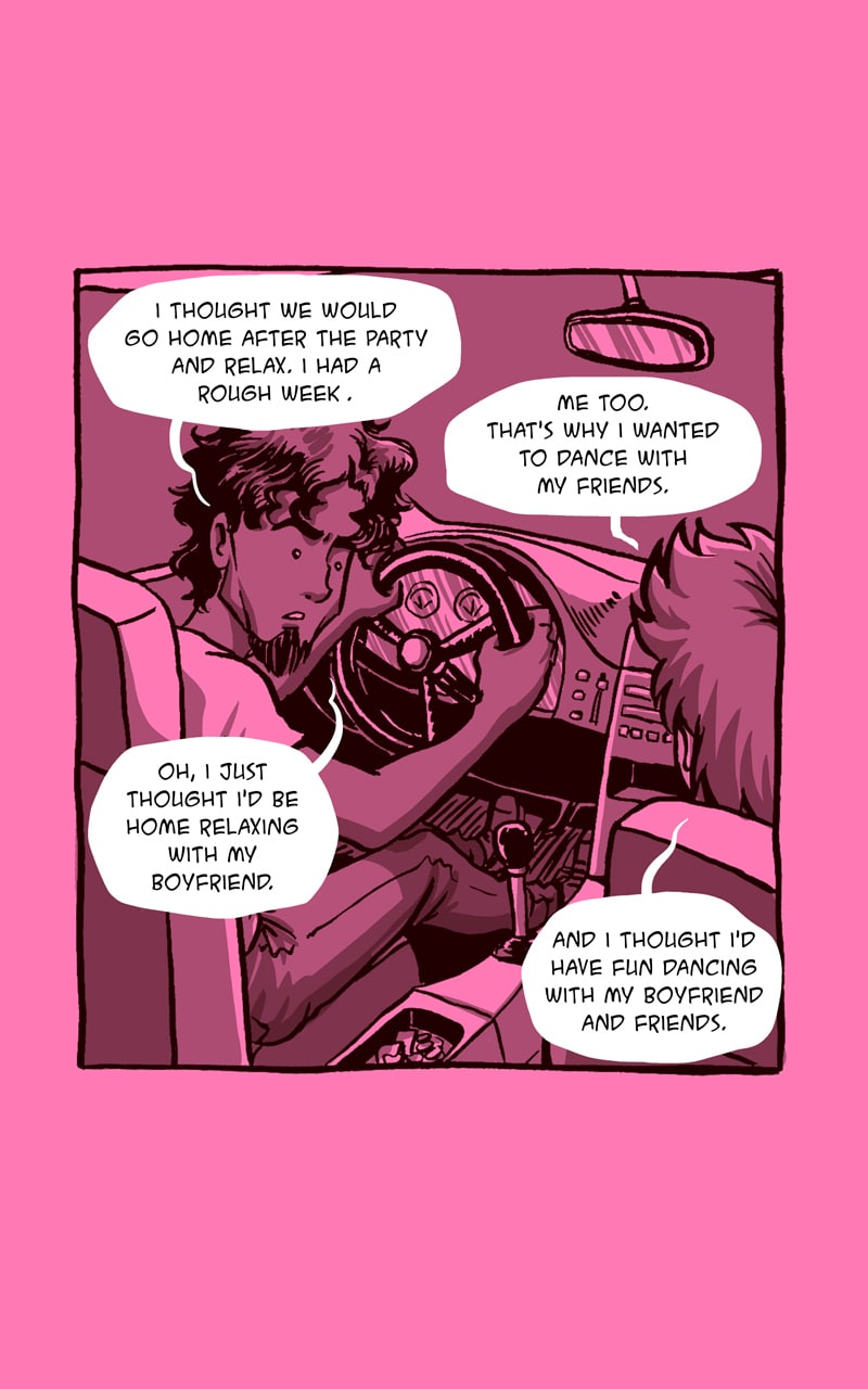 #lgbt #gay #lgbtcomics #gaycomics #relationship #Sliceoflife #car #party #friends #dancing #message #love #queer #queercomics