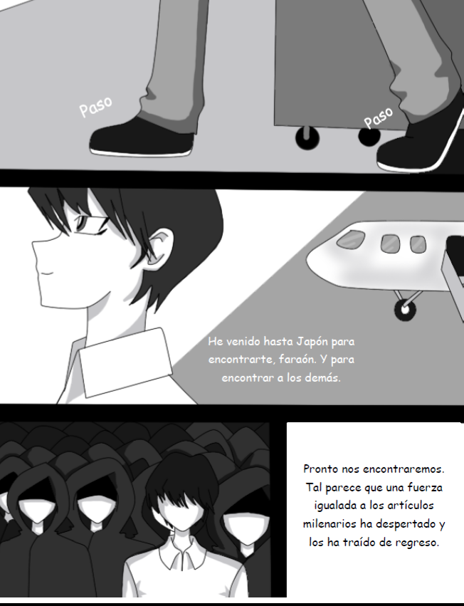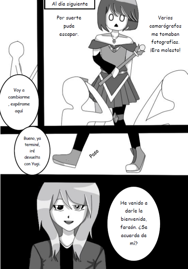 El inicio y primer encuentro entre Shiro y Atem, a la vez que con Seto Kaiba. Falta poco para que la maldad se desate. Si no se entiende es porque unas páginas se me eliminaron sin querer, les pido mis disculpas.