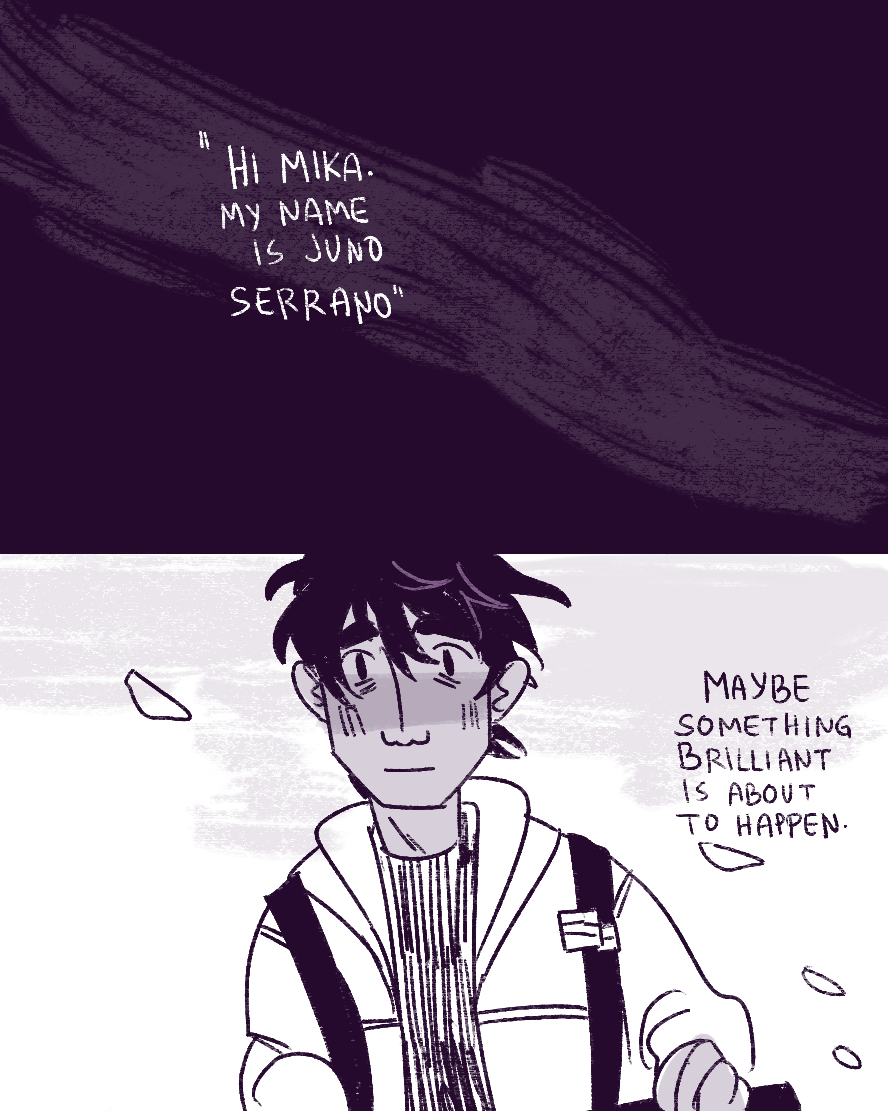 A couple of punk college students in Manhattan trying to navigate their way through life and university. The story centers around Juno, a young trans guy who wants to convert to Judaism. He grew up in foster care, hella awkward and hella broken, always smiling regardless.