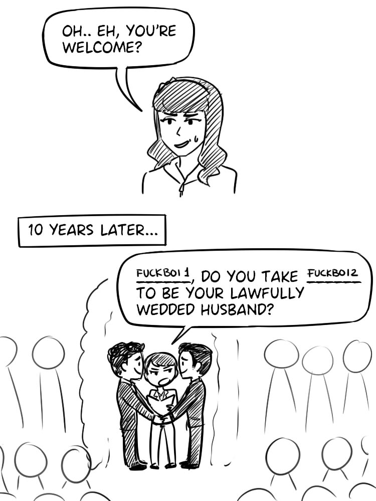 This reminds me if that deleted asdf skit of "Guess who's gay?" *flashes to church* "Us. "