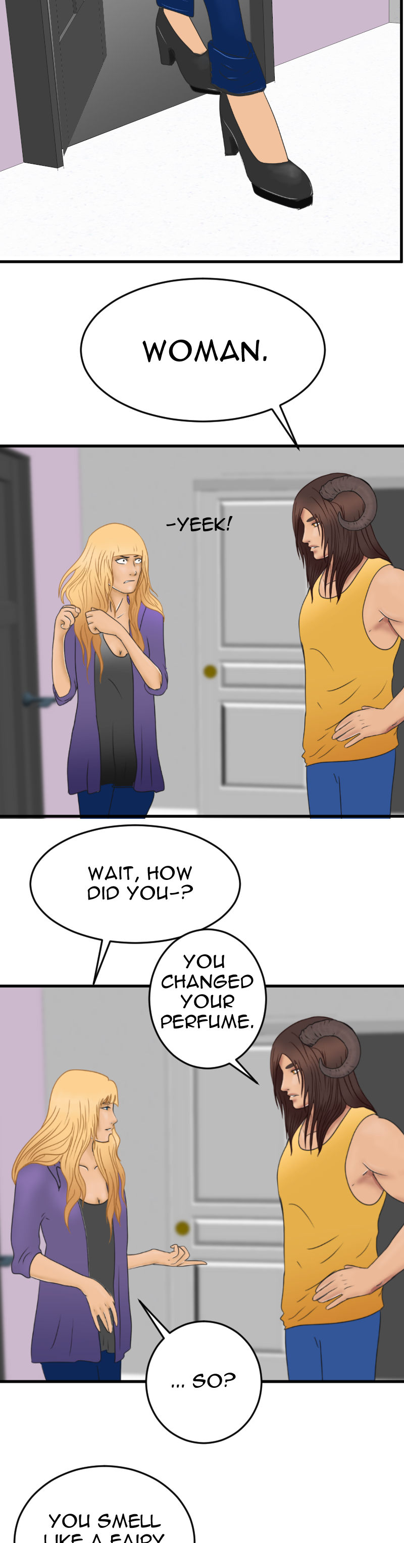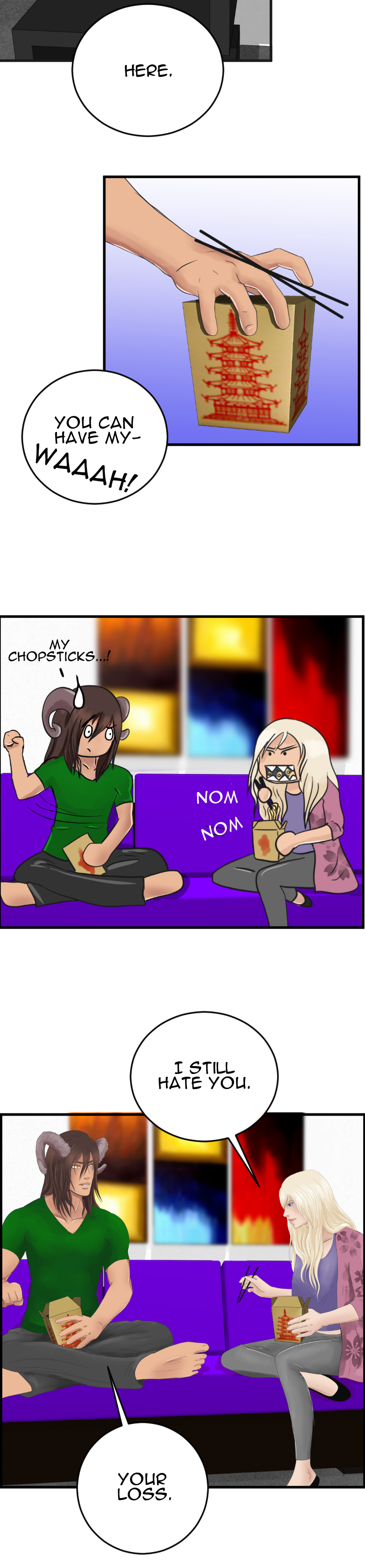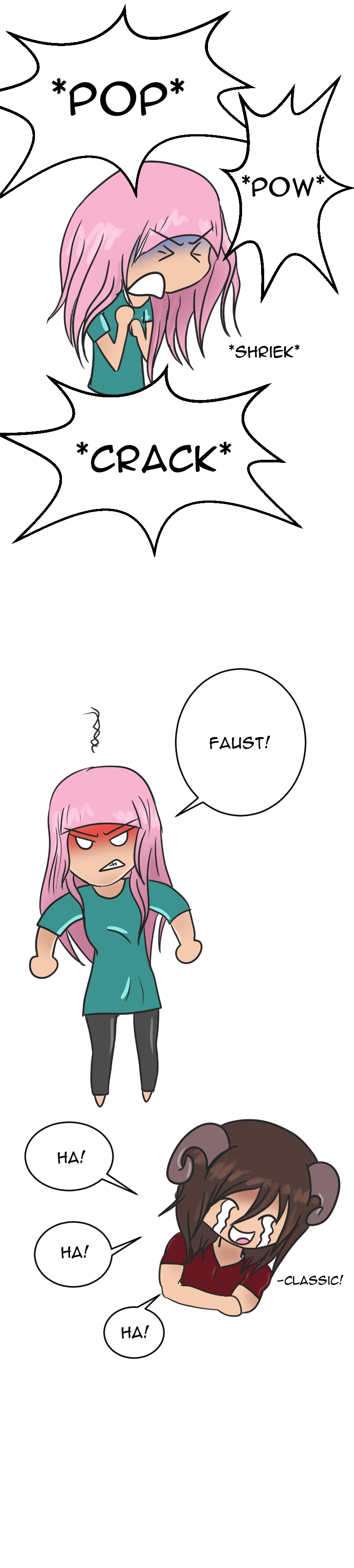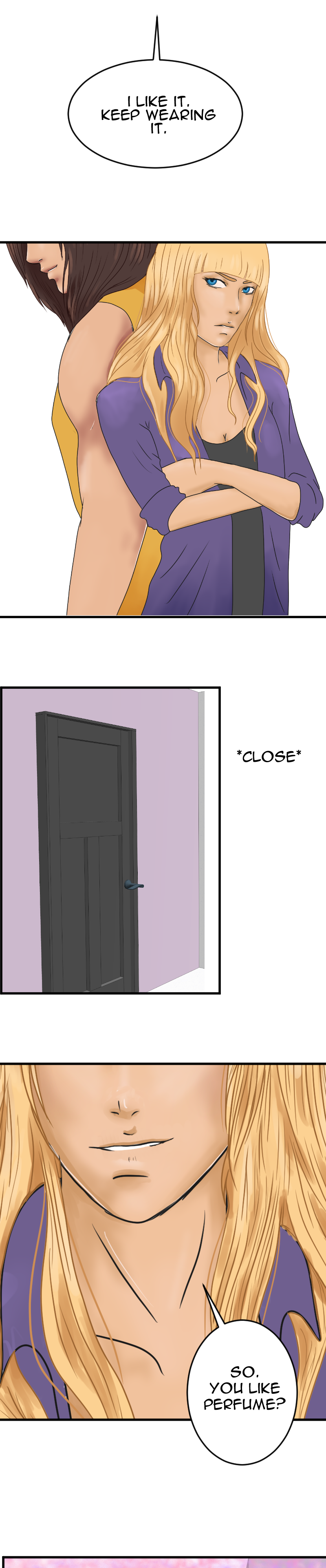 I love the coughing fit. That is so very real to life. And the sparklies when he sees her not just without pink hair, which was adorably cute, though undeniably pink, but... platinum blonde? Absolutely adorable. Thank you.