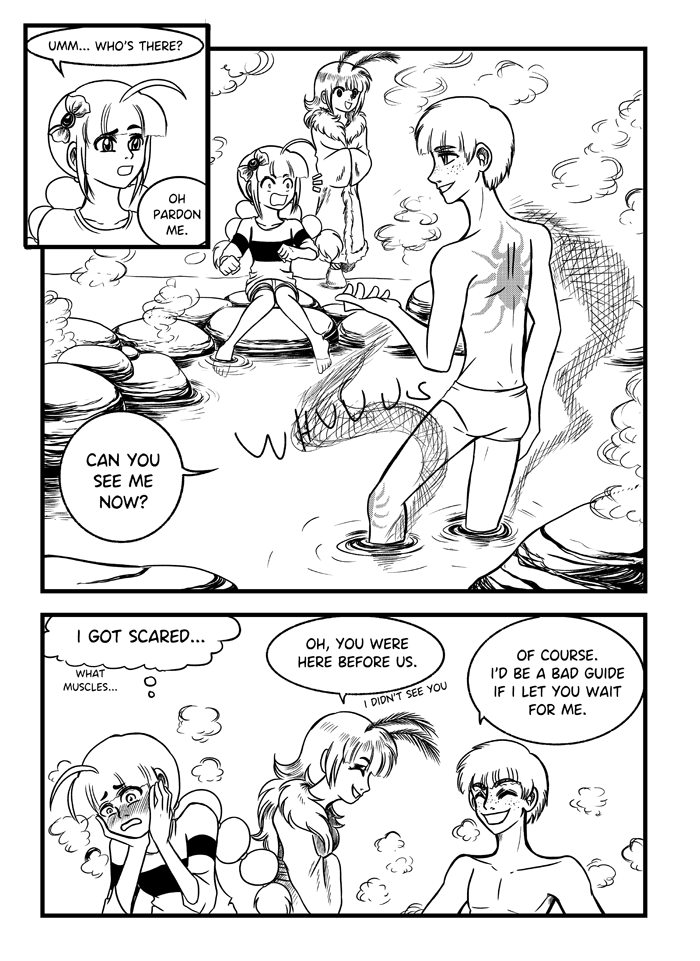 And their guide is giving some fan service with his small swimming trunks.
