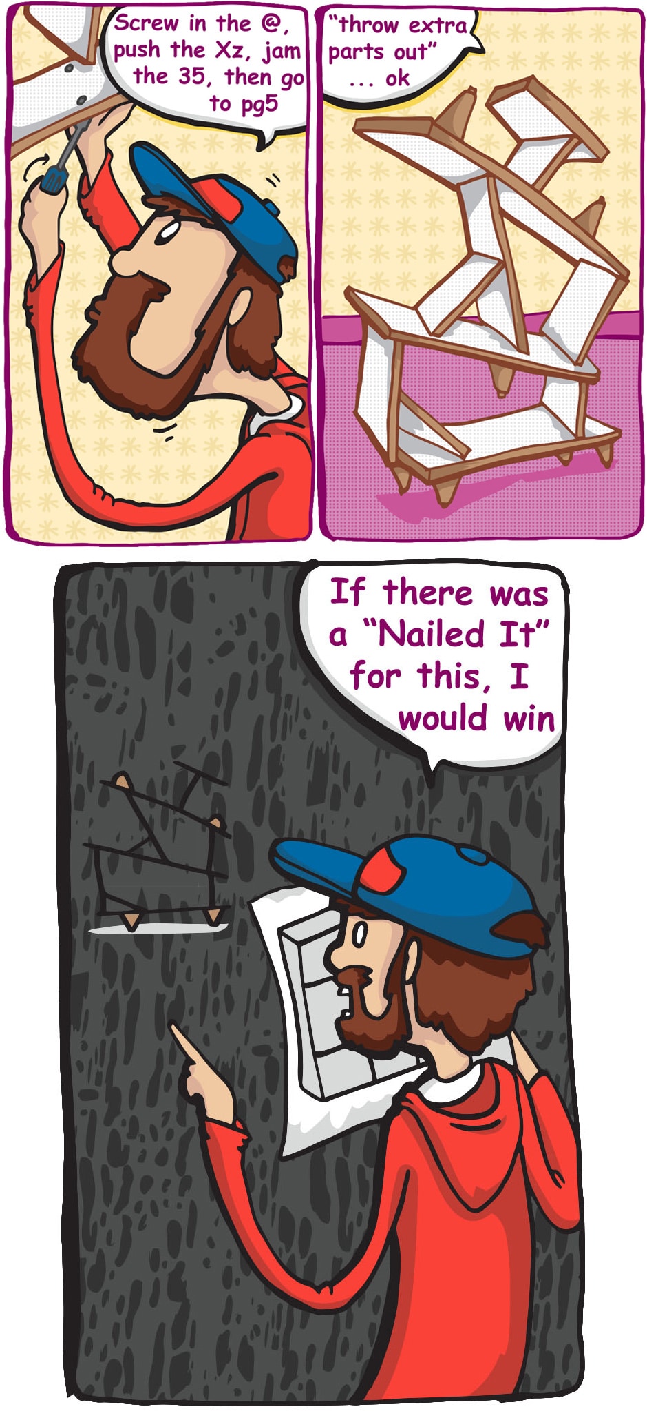Yah know when you get that one thing and it just won't fit together, and theres all those extra parts ...