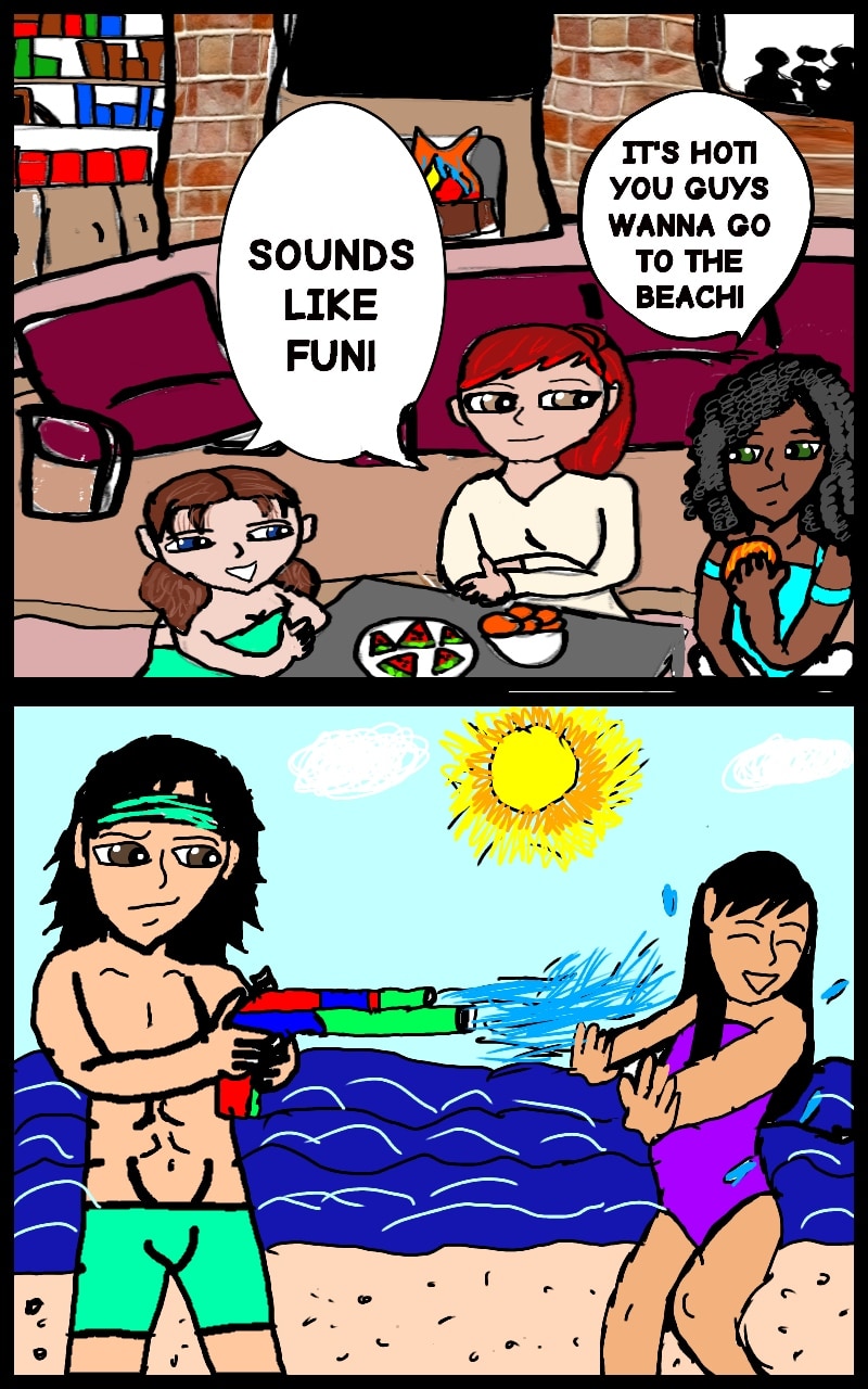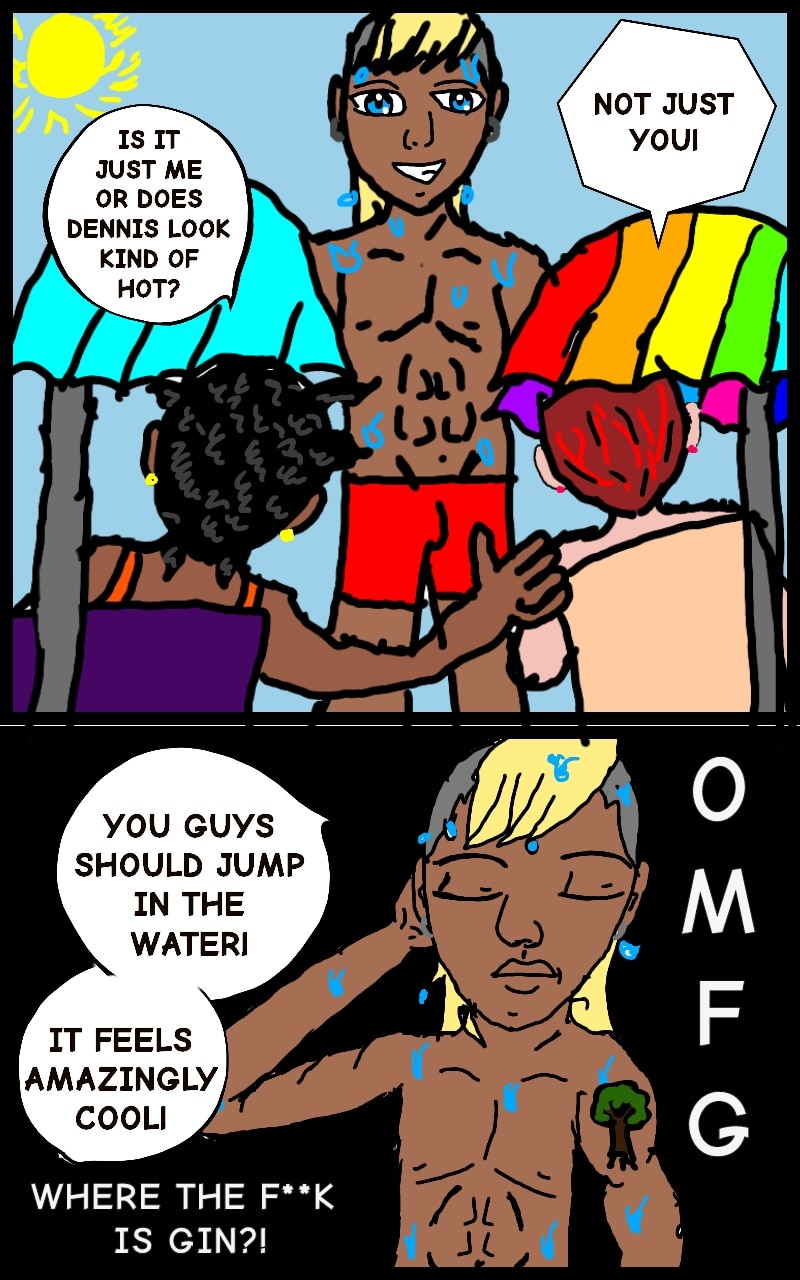 The gang goes to the beach, after an awkward situtian between Dennis and Nana. Gin starts to catch a wift of it.