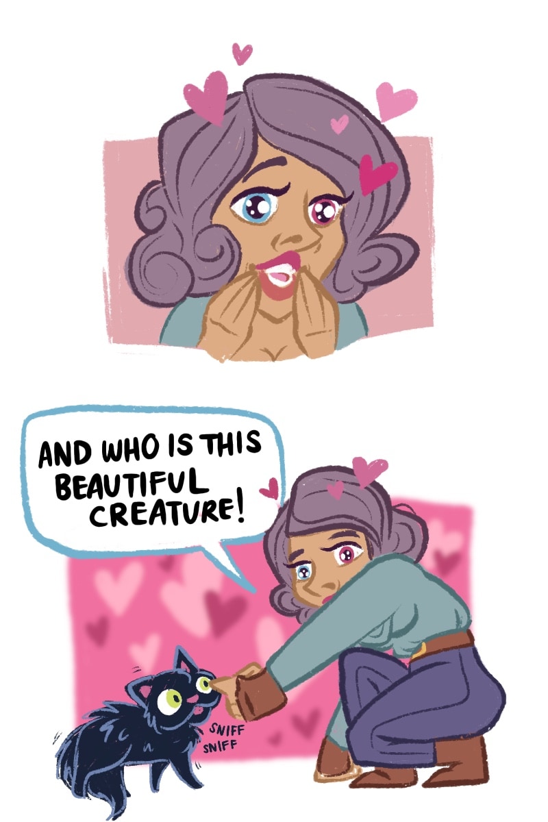 Haha, I like that he's all polite and cheerful but is basically just like "hey hun! I found an insane person with a cat in the woods! Best do something about this! 8D" XD