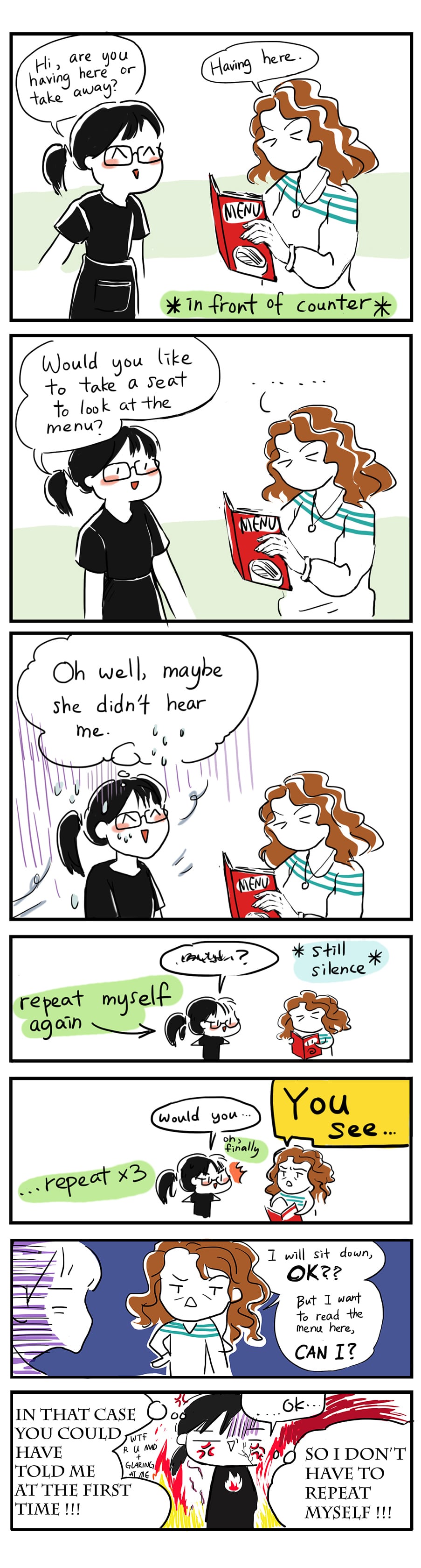 I love your comic style :D looking forward to more!!! Lol customers can be scary sometimes XD