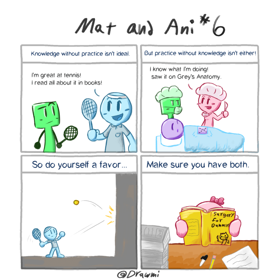 Mat and Ani learn that practice and knowledge are equally important. Also, If you like funny cartoons, you should check out my buddy Toontastic! https://tapas.io/mrtoontastic