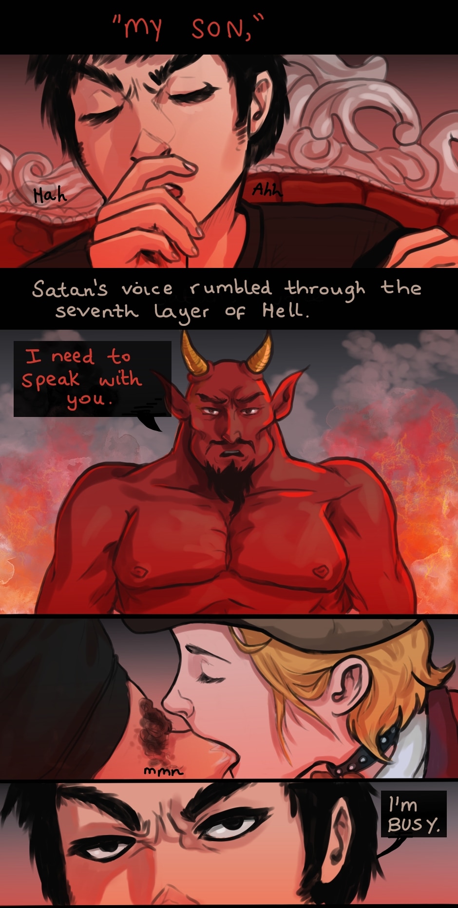 Admitedly, there are a few things I thought I'd never draw... and Satan's nipples was one of those things... but here I am.... Anyways, enjoy and thanks for reading!