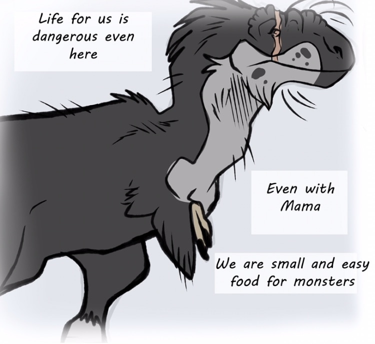 Zhao, is a rambunctious Yutyrannus hatchling in early cretaceous China. The runt of her litter, she’s stuck with the short end of the stick before her life has even truly begun.
