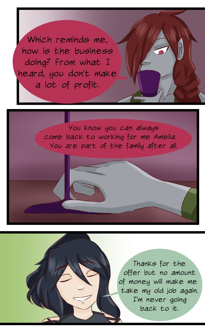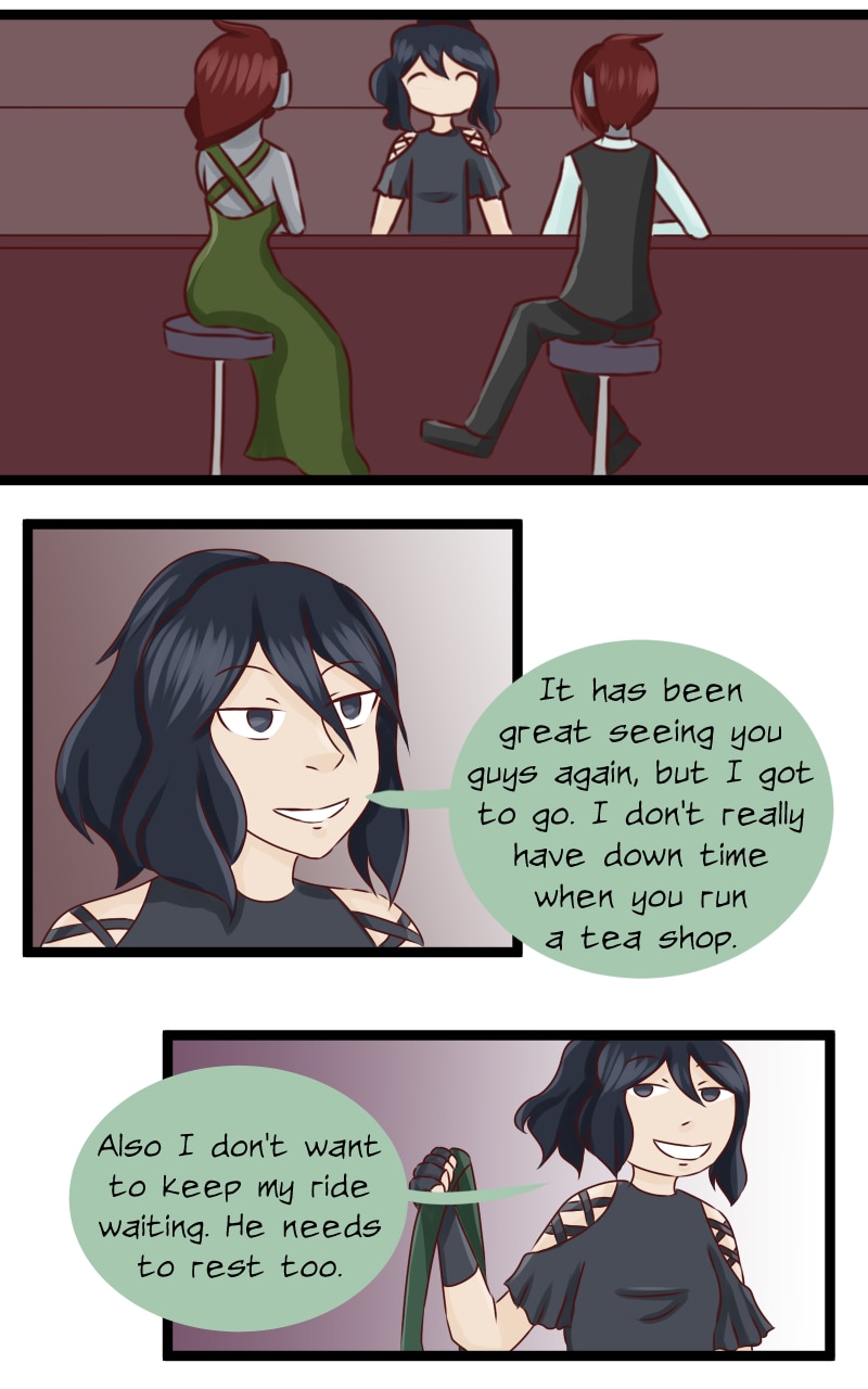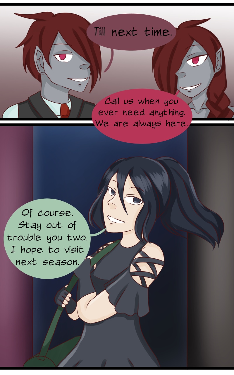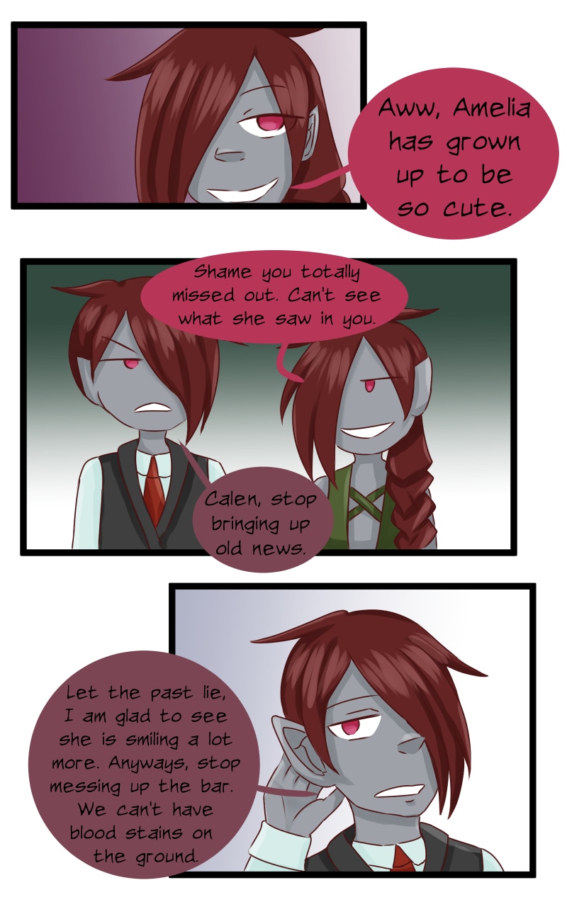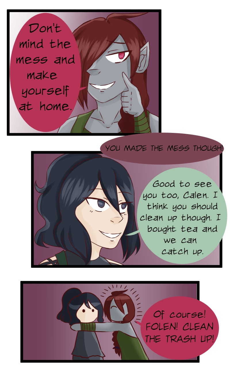 And THIS TOOK ME FOREVER! I'm so proud that this is done! I decided not to do this giant strip without preparation next time. XD Anyways, Camellia has some background with people. And yes, Calen and Folen are both going to be recurring characters. [By the way, Calen is my favourite side character because she is so wacky.]