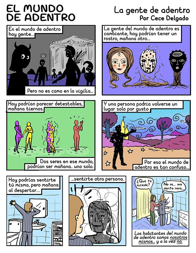 Todos tenemos un afuera y un adentro que están en contante relación, estos comics nacen de esos procesos los cuales toman forma por medio del arte para contarnos sobre mundos que todos conocemos, muchas veces desde un sentir que no siempre podemos entender, por medio de este trabajo pretendo dar rostro a la parte que yace oculta e invisible de nuestra realidad.