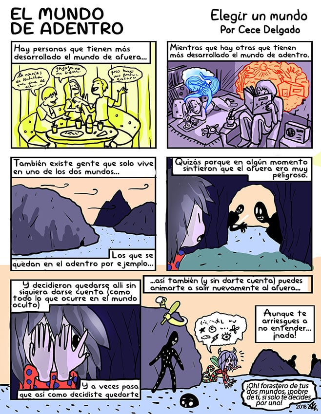Todos tenemos un afuera y un adentro que están en contante relación, estos comics nacen de esos procesos los cuales toman forma por medio del arte para contarnos sobre mundos que todos conocemos, muchas veces desde un sentir que no siempre podemos entender, por medio de este trabajo pretendo dar rostro a la parte que yace oculta e invisible de nuestra realidad.