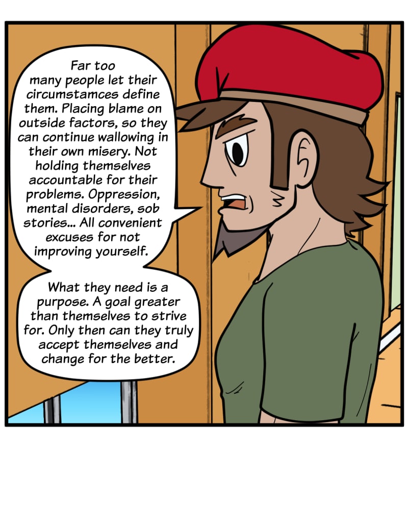 Yep, not a fan of the fact that he included mental disorders as "excuses". Well, not a fan of forcing this philosophy on people in general, actually (not to mention the distressing level of militantness)... it may work well for some, but clearly not for everyone. :/ I am both curious and distressed about seeing the progression here.