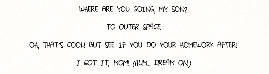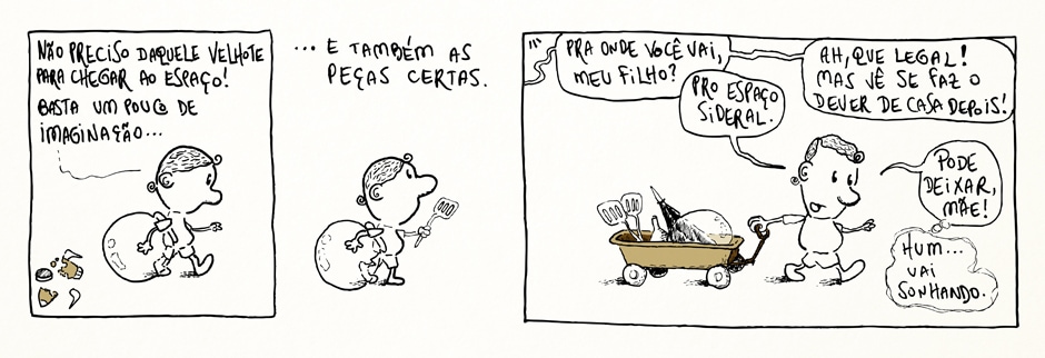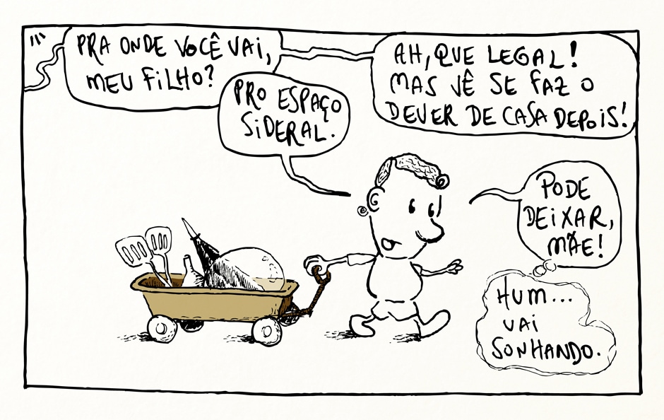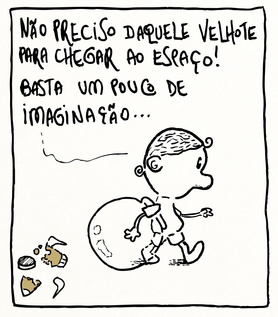 Eu disse “até chegar lá”? Será que ele viaja mesmo pro espaço? Não sei... só adianto que não vai ser assim tão fácil, mas ele é brasileiro e não desistirá nunca!