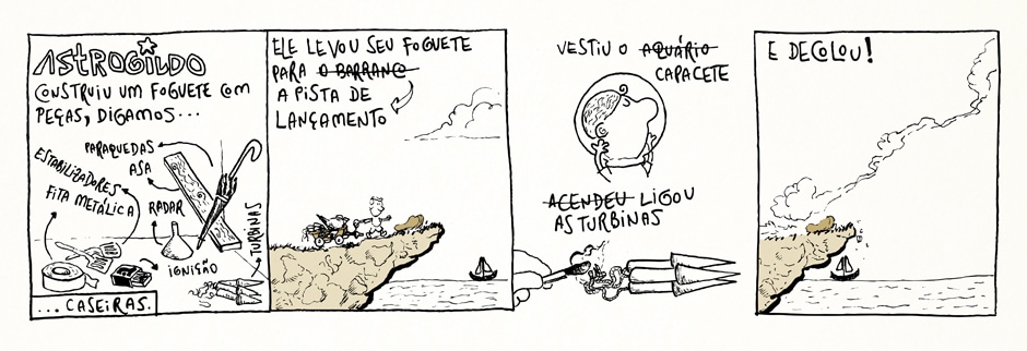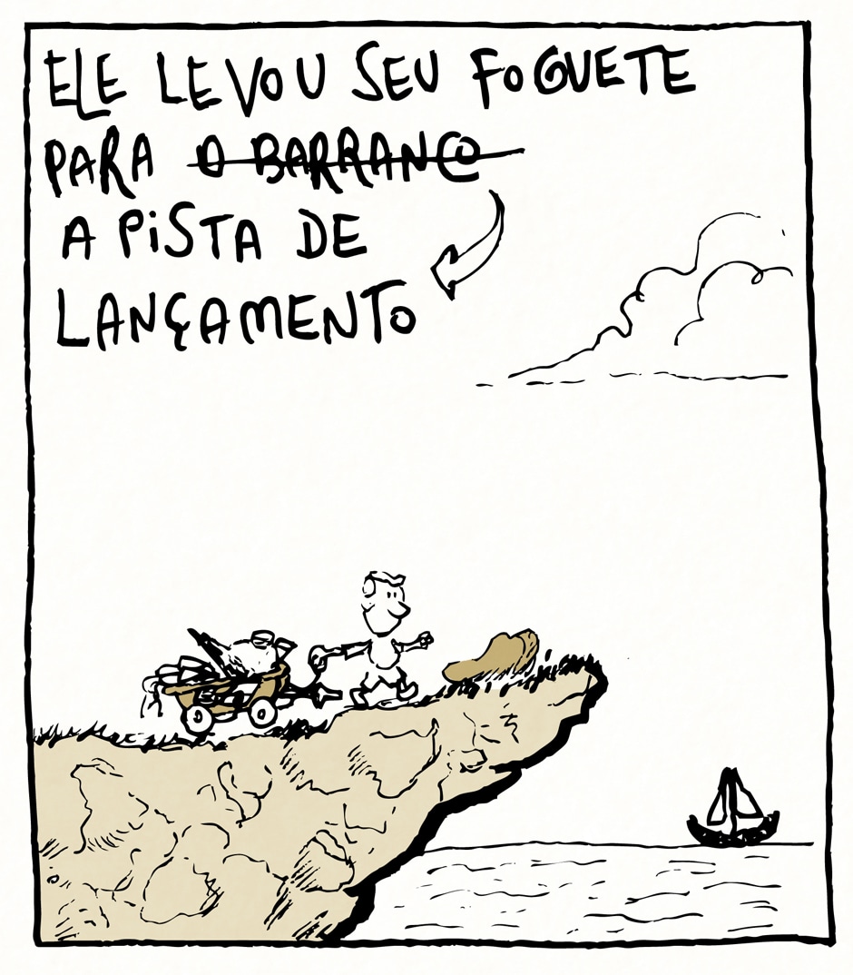 Eu disse “até chegar lá”? Será que ele viaja mesmo pro espaço? Não sei... só adianto que não vai ser assim tão fácil, mas ele é brasileiro e não desistirá nunca!