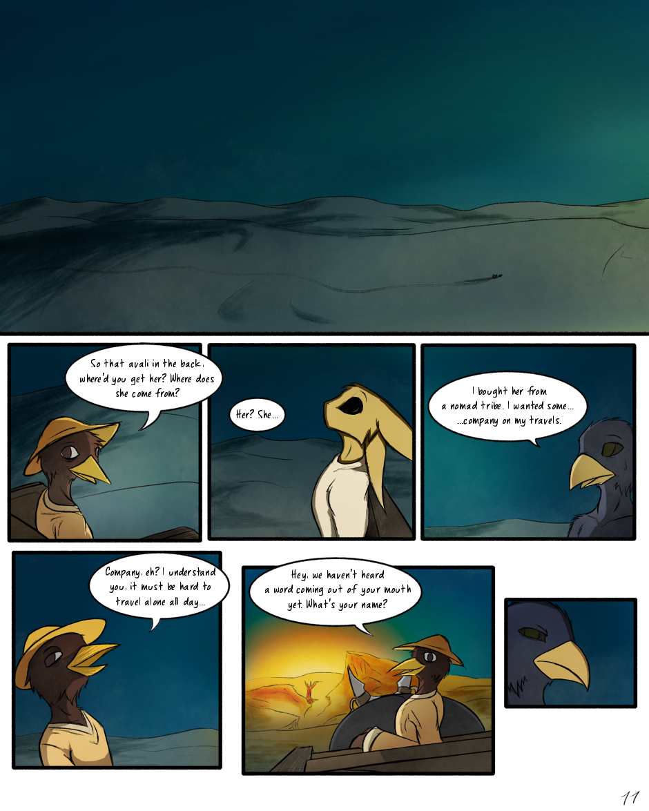 A bit of a time skip, and an attempt at drawing a desert at night! This page was a damn challenge to do, but it turned out fine enough xP