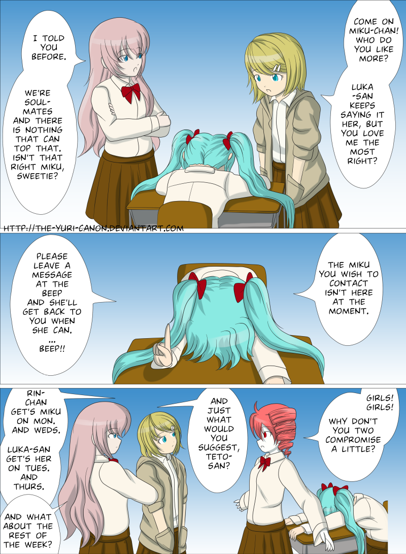 Series of short stories and strips I did for Vocaloids while I was sick and very depressed. I'll be posting what I've finished over the next while. Hope some of you enjoy it.