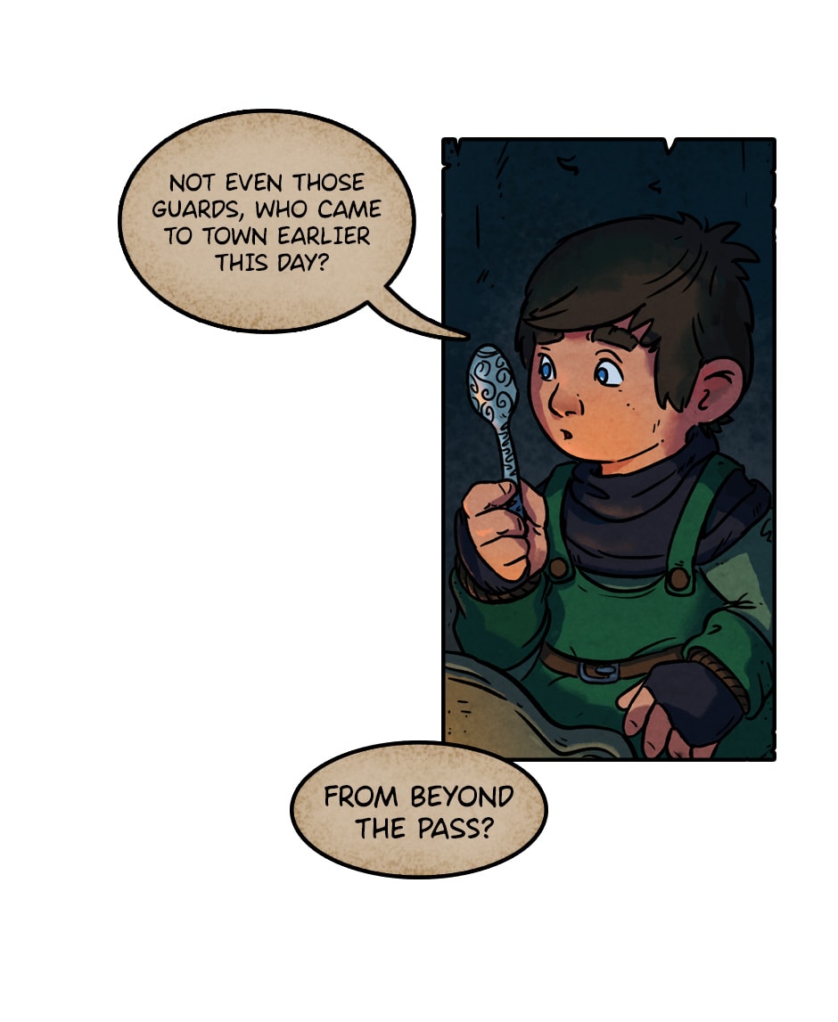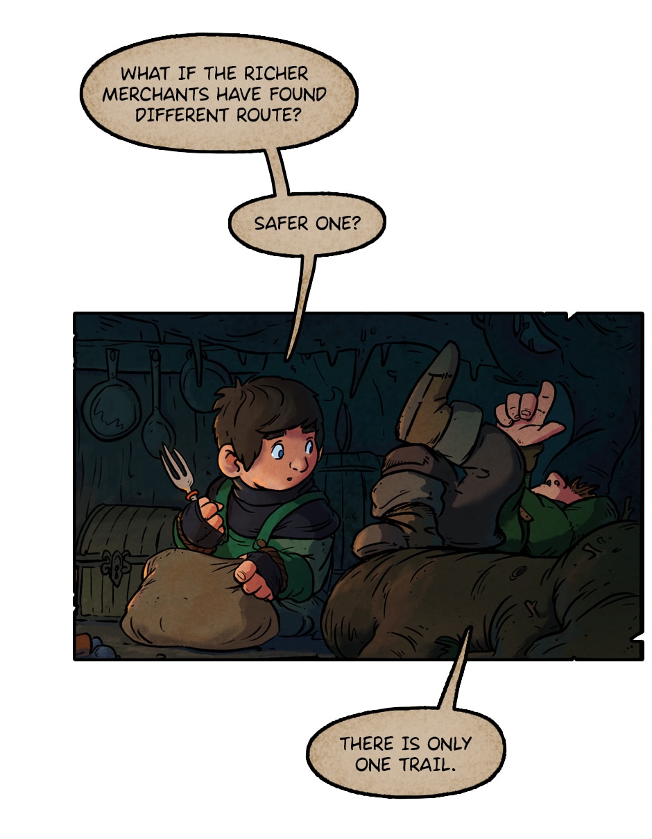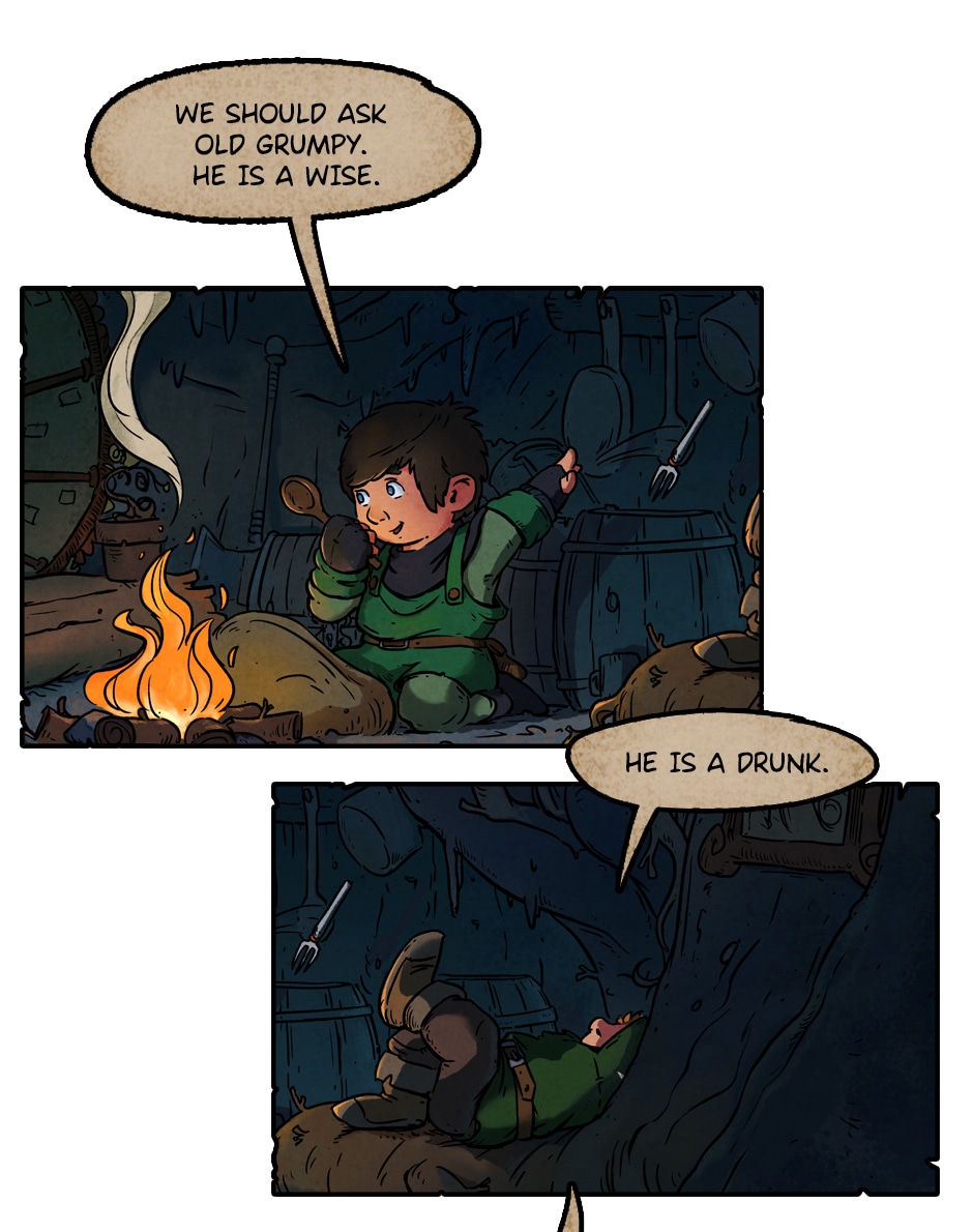 These panels aesthetically reminds me of The Hobbit, which I'm very fond of (and for some reason, my mind always connects more strongly The Hobbit with that old Lord of The Rings animation than with LotR itself). Great comic!