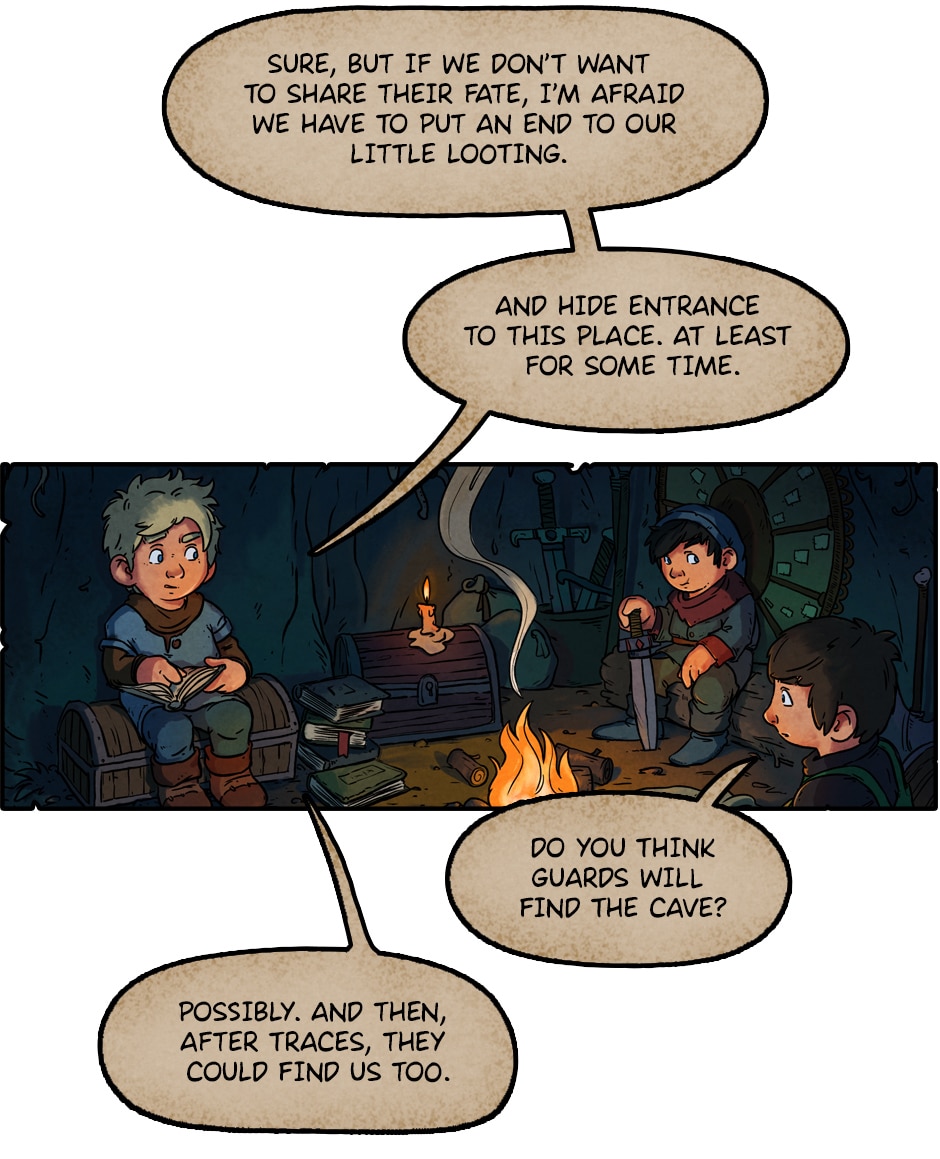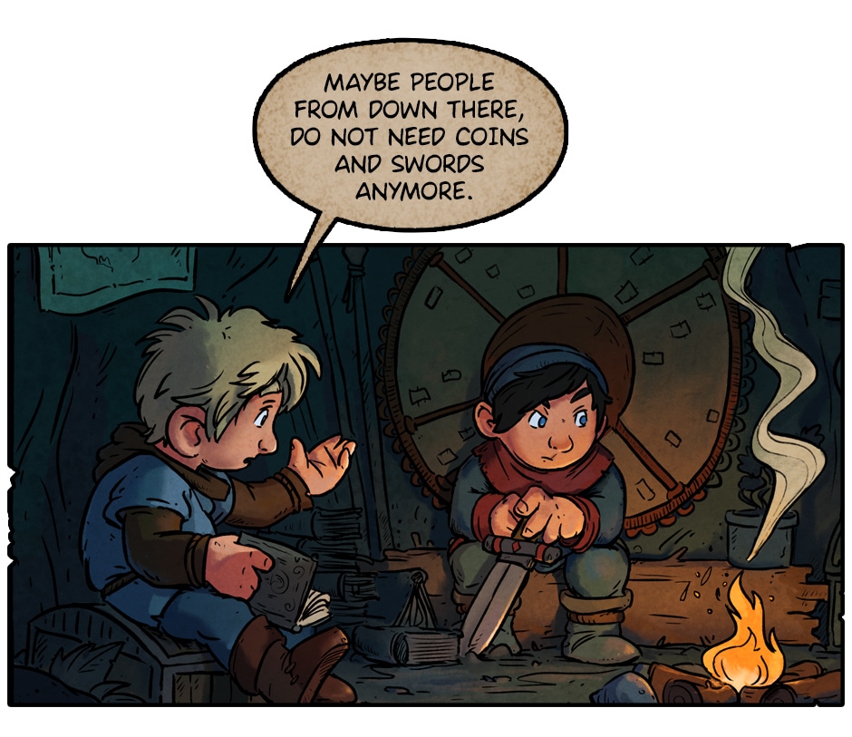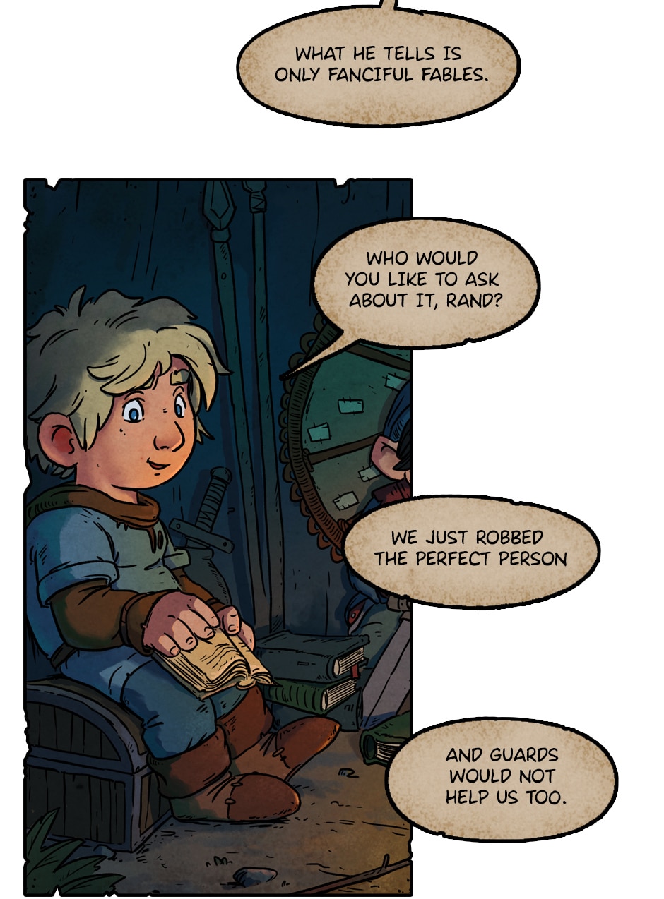 These panels aesthetically reminds me of The Hobbit, which I'm very fond of (and for some reason, my mind always connects more strongly The Hobbit with that old Lord of The Rings animation than with LotR itself). Great comic!