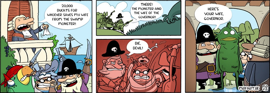 In Dutch, his albums are published by Syndikaat. Here I,ll try to share his antics from the very beginning of crude, simple strips to, errr, slightly better ones. And maybe I'll even share some of the bigger stories later on.